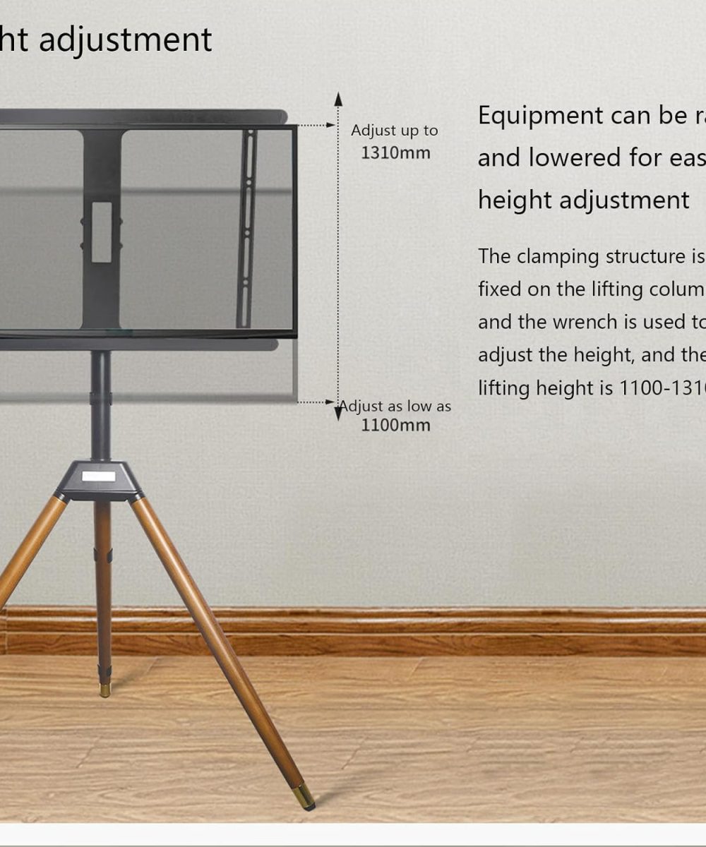 מעמד טלוויזיה יוקרתי בעיצוב חצובה רטרו. מתאים לטלוויזיות בגודל 32-65 אינץ'. הרכבה קלה ומהירה. כולל מדף לממיר או סטרימר ותופסנים ייעודיים לכבלים לשמירה על הסדר. יכולת נשיאה עד 35 ק"ג. כיוון גובה בין 110 ס"מ ל-131 ס"מ. רגלי עץ ושלדת מתכת ליציבות מושלמת. מסתובב 180 מעלות.