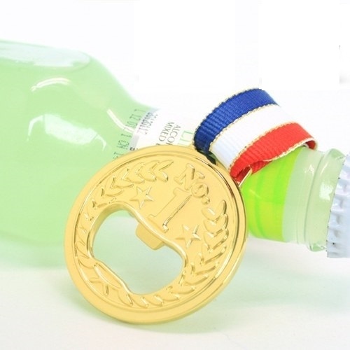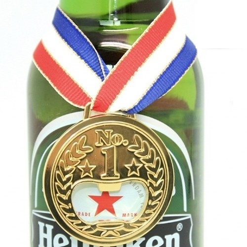 פרס אולטימטיבי לתחרות שתייה! דמוי מדליית ספורט עם פותחן בקבוקים. למדליה יש סרט מוזהב ובצבעים כחול – לבן – אדום. קוטר כ – 5 ס"מ.
