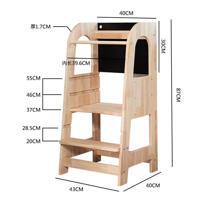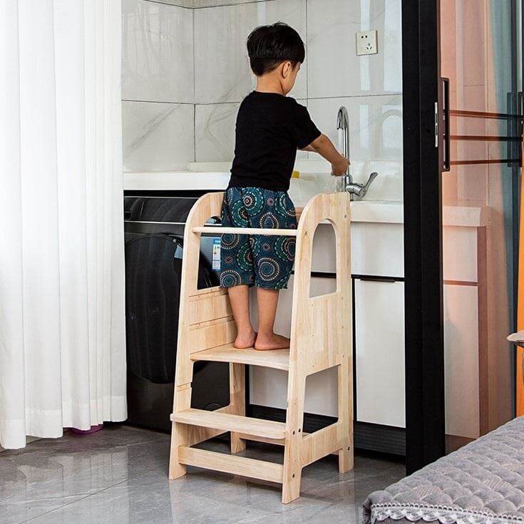 מגדל למידה מעץ טבעי לילדים – פתרון מושלם לעידוד עצמאות וסקרנות של ילדיכם. עשוי מעץ מלא איכותי, המגדל שלנו מעניק לילדכם גישה בטוחה למשטחי עבודה בגובה, כמו השיש במטבח או הכיור בחדר האמבטיה.