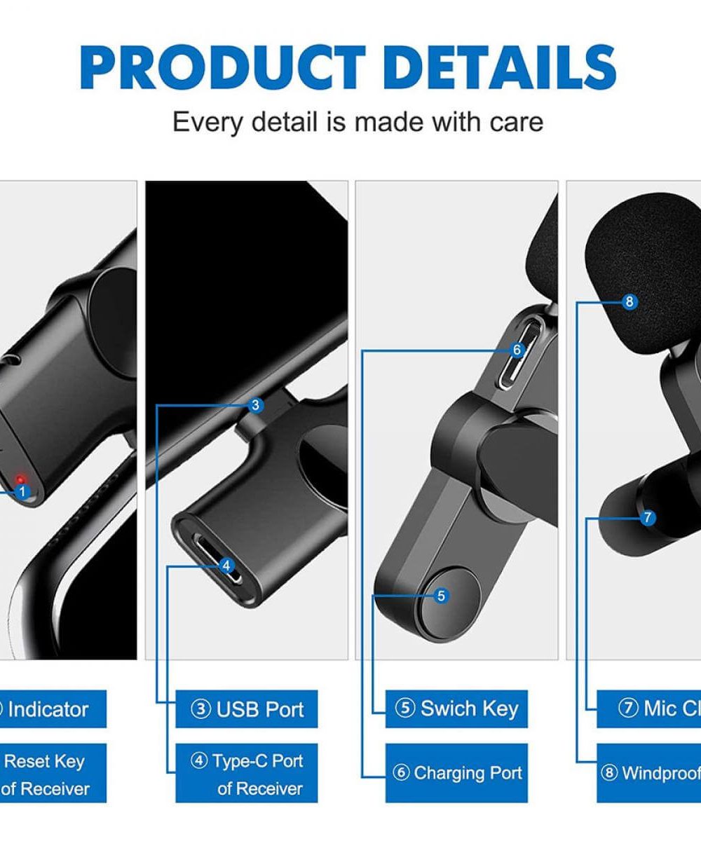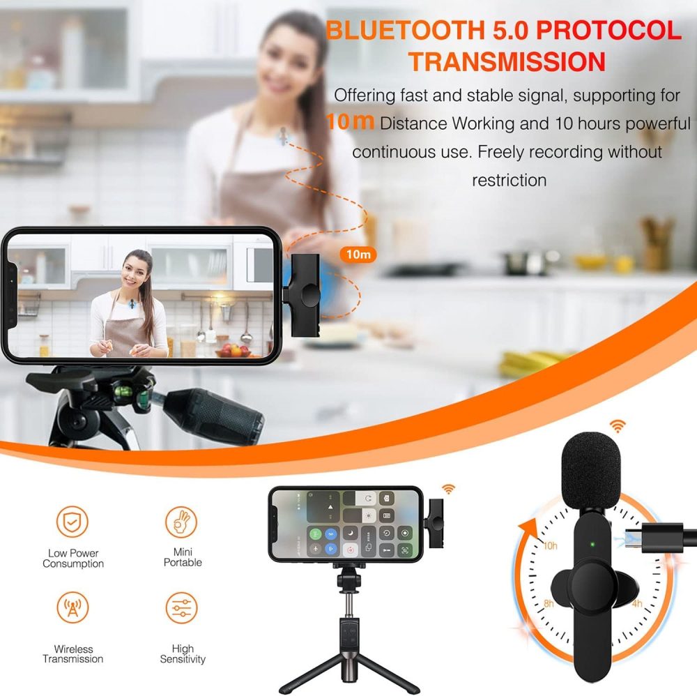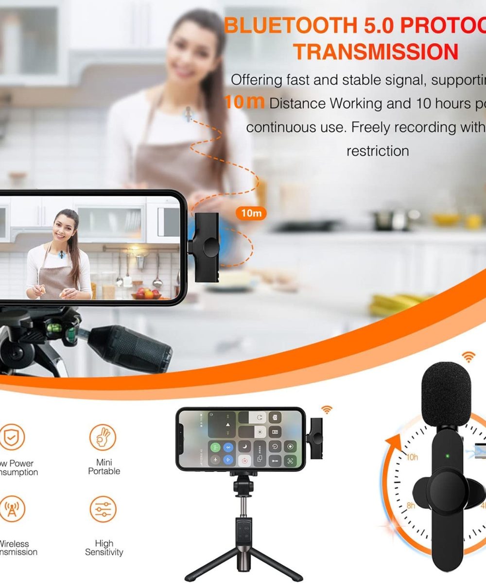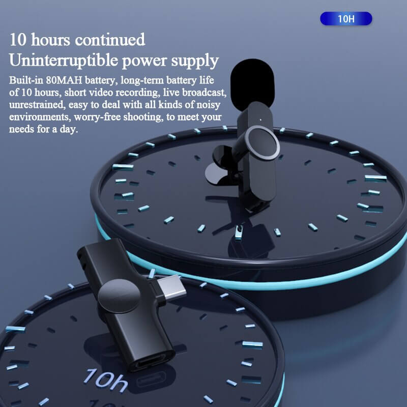 מיקרופון אלחוטי לסמארטפון לדש החולצה. זמן סוללה ארוך, בהמתנה ובתנאי שהסוללה טעונה במלואה, עד כעשר שעות. יכול לשמש בזמן שיחות בזום, ביצוע סירטונים שונים, הדרכות וכדומה. למכשיר יש בנוסף גם מספר אפשרויות לסינון רעשים. קיימים שני דגמים לבחירה, דגם לאייפון, ודגם ל – Type-C. מגיע בצבע שחור בלבד.