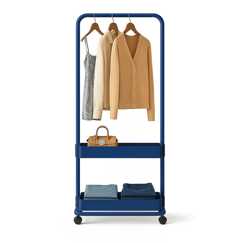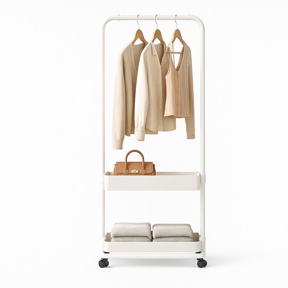 מתלה בגדים נייד עם מדפים – פתרון אחסון חכם ומעוצב לכל בית