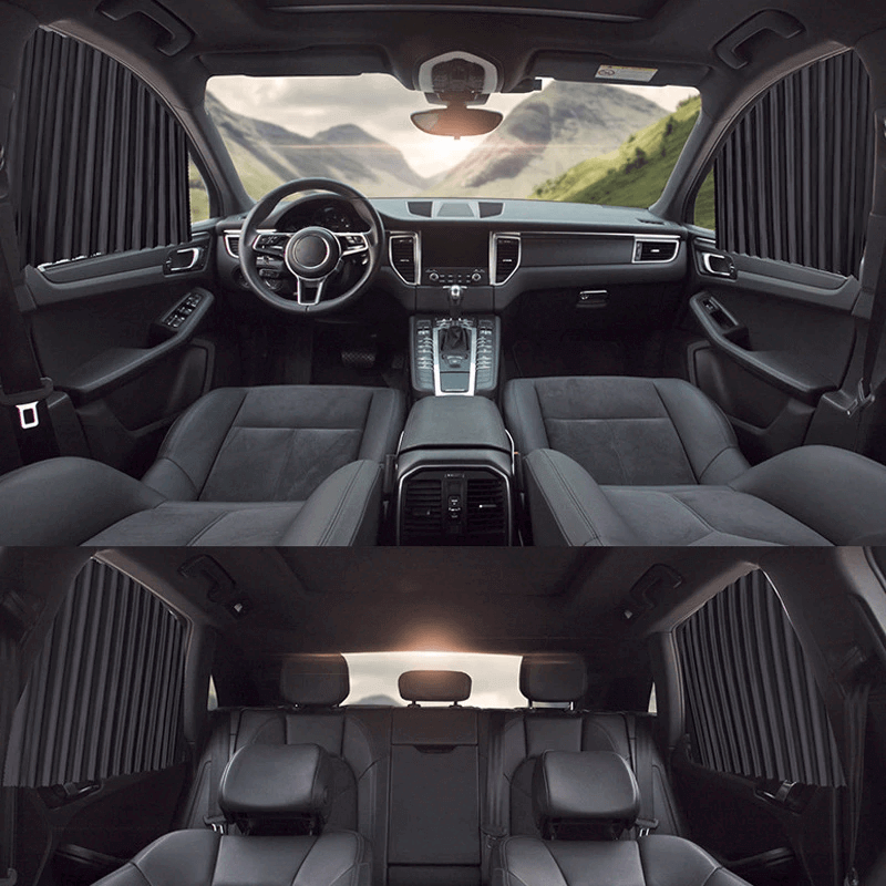 סט וילונות לרכב, 2 חלונות מקדימה+ 2 חלונות מאחורה, רוצים להוריד את החום ברכב, או פרטיות, וילון לחלון עשוי מכותנה נעימה למגע, כוללת הגנת UV, קל להתקנה ללא צורך בברגים, נתפס מגנטי על מסגרת החלון, כולל מסילה לפתיחה וסגירת הוילון