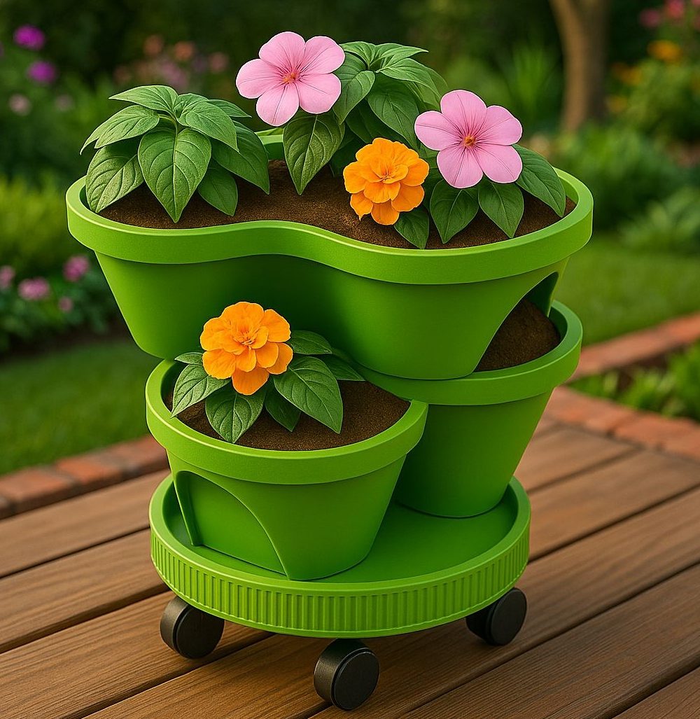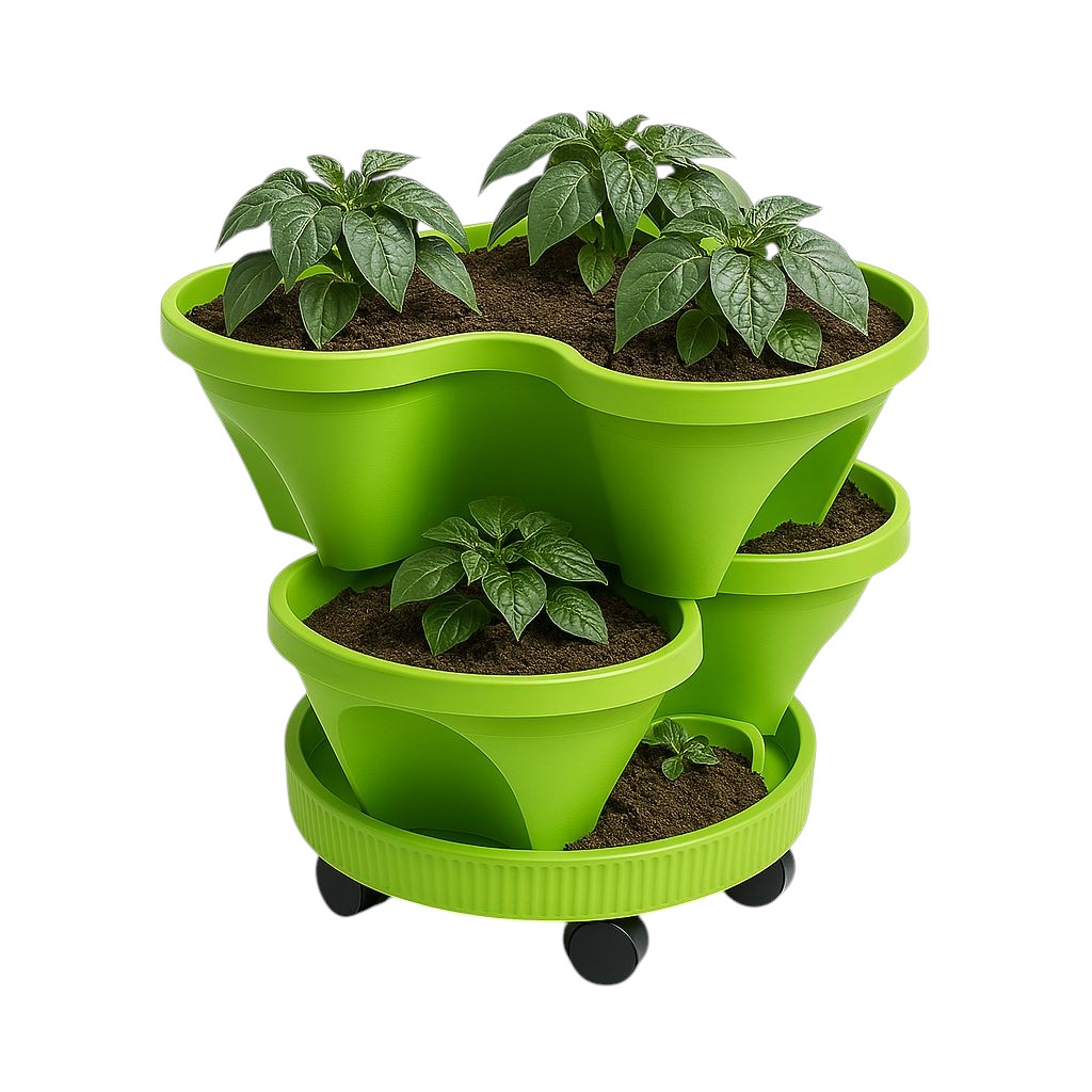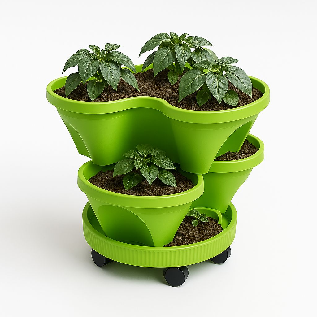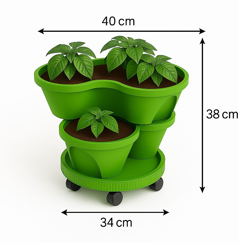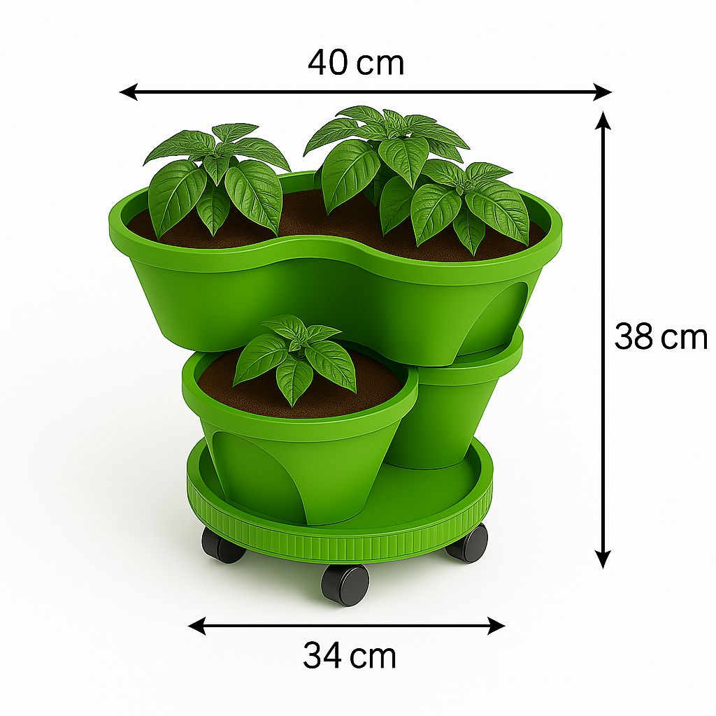 הפכו כל פינה בבית או במרפסת לגינה ירוקה ומלבלבת עם העציץ הרב קומתי שלנו! סט זה כולל 2 קומות גידול הניתנות לערימה, ובסיס יציב עם 5 גלגלים לניידות וגמישות מרבית. זהו הפתרון המושלם לגידול מגוון צמחים במקום מוגבל!