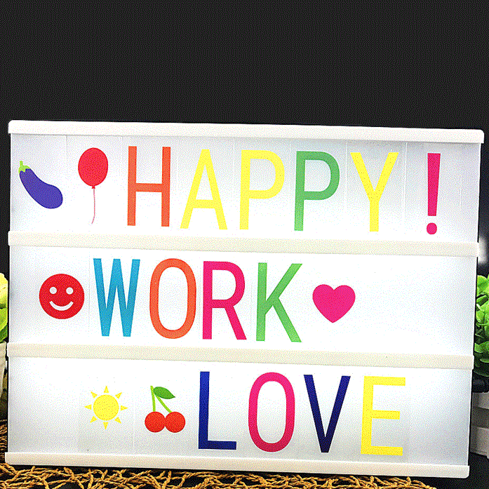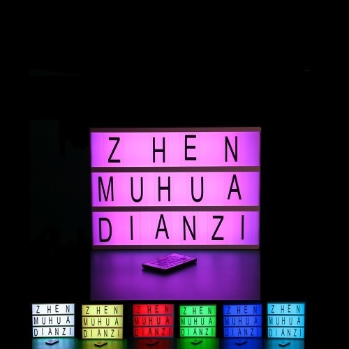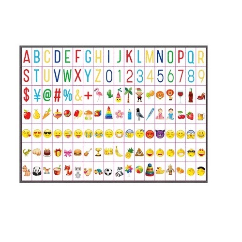 קופסת תאורה מחליפת צבעים עם אימוג'ים ואותיות, קופסת התאורה מצוידת גם בשלט רחוק המאפשר שליטה בתאורה ובצבעים של התאורה. מאפשר שימוש למטרות שונות ומגוונות במוצר. קופסת התאורה מגיעה בגודל כ – 30X22X4 ס"מ, לערכה מצורפות אותיות באנגלית וכל מיני סוגי אימוג'ים.