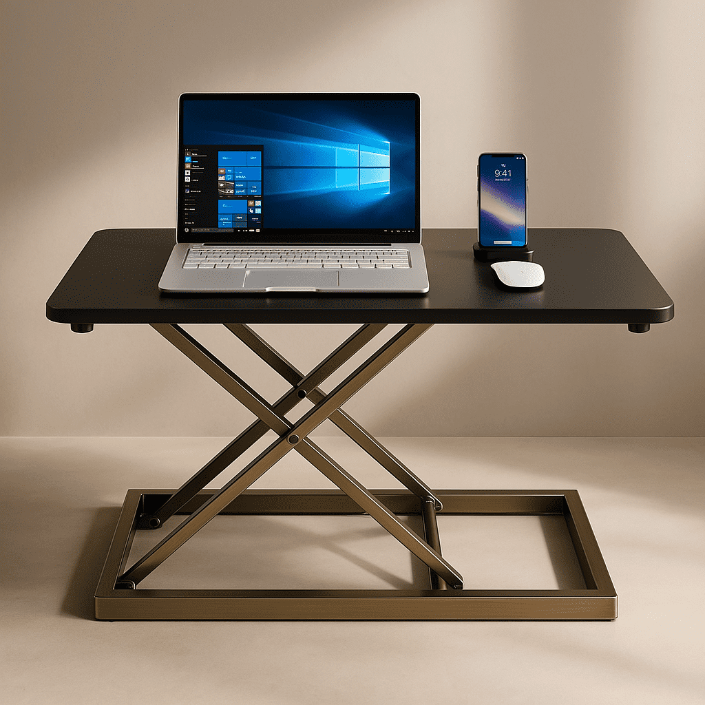 מחפשים פתרון ארגונומי? מעמד שולחני זה הופך כל שולחן לתחנת עבודה מודרנית ונוחה, המאפשרת מעבר קל בין ישיבה לעמידה.