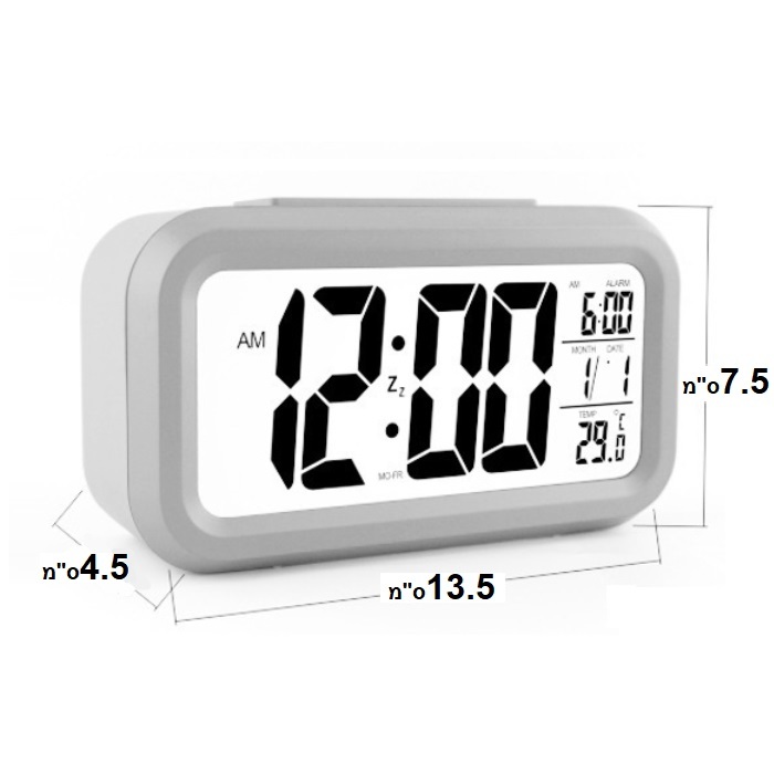 שעון מעורר עם תצוגת ספרות גדולות, דיגיטלי עם ספרות גדולות שגם אפשר לראות ובבירור. השעון בגודל המצוין בתמונות. מגיע בצבעים: כחול. נוח מאד לשימוש. לחיצה על הכפתור העליון מדליקה תאורה חזקה על הספרות. בין שאר הפונקציות יש גם פונקציית "לילה" המדליקה תאורה חלשה לראייה טובה יותר של הספרות בחושך ובמקביל גם חוסכת באנרגיית הסוללות. השעון פועל באמצעות 2 סוללות AA (לא כלול בערכה).