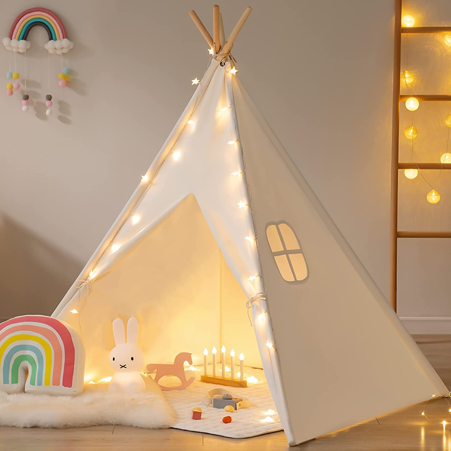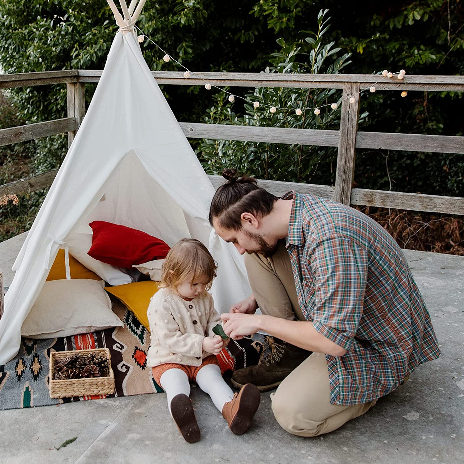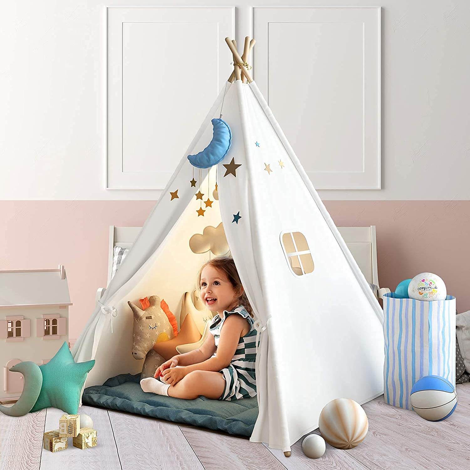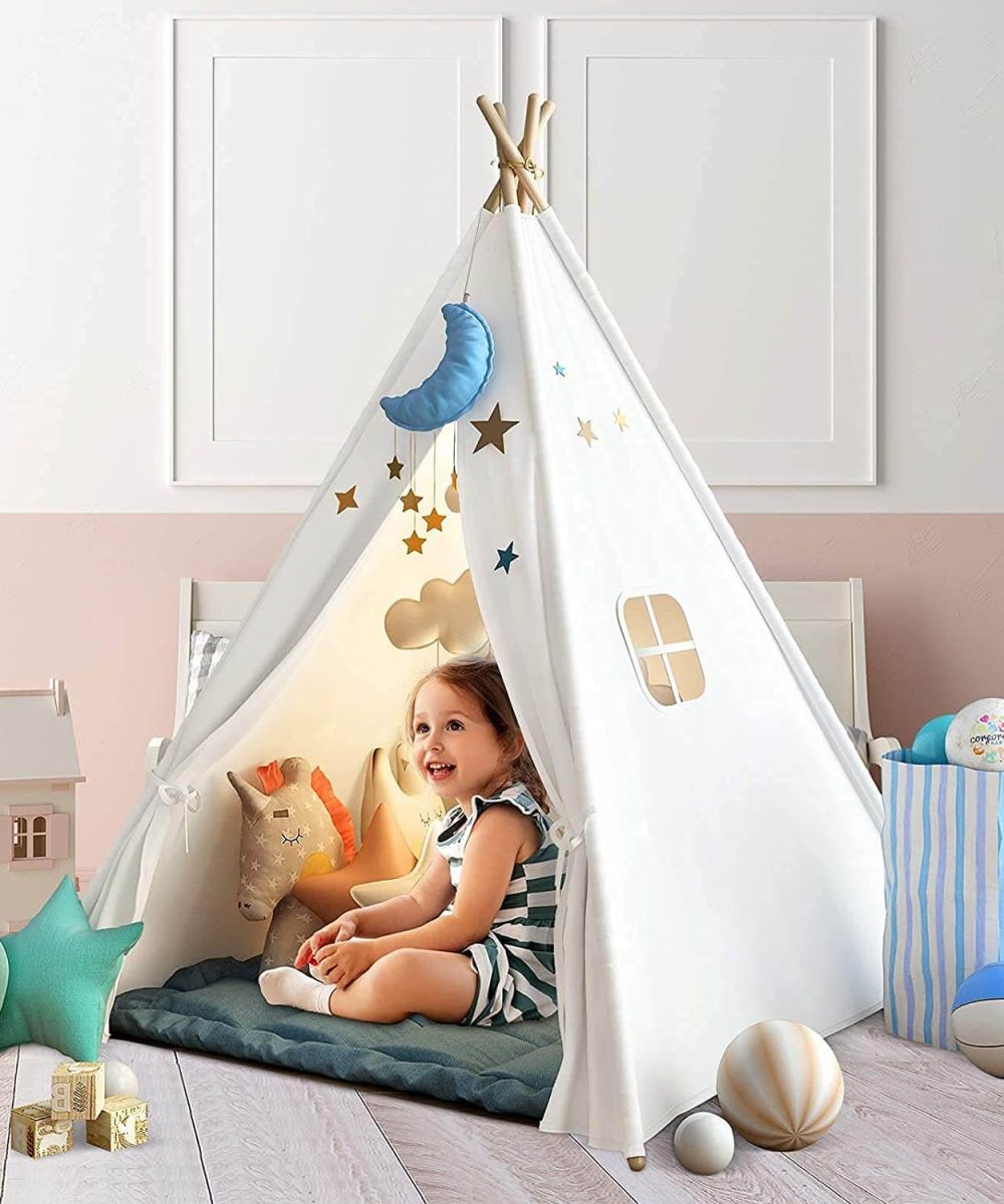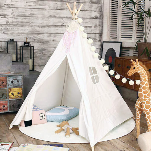 אוהל טיפי אינדיאני ביתי לילדים במגוון גדלים מגיע ללא אביזרים או שטיח.