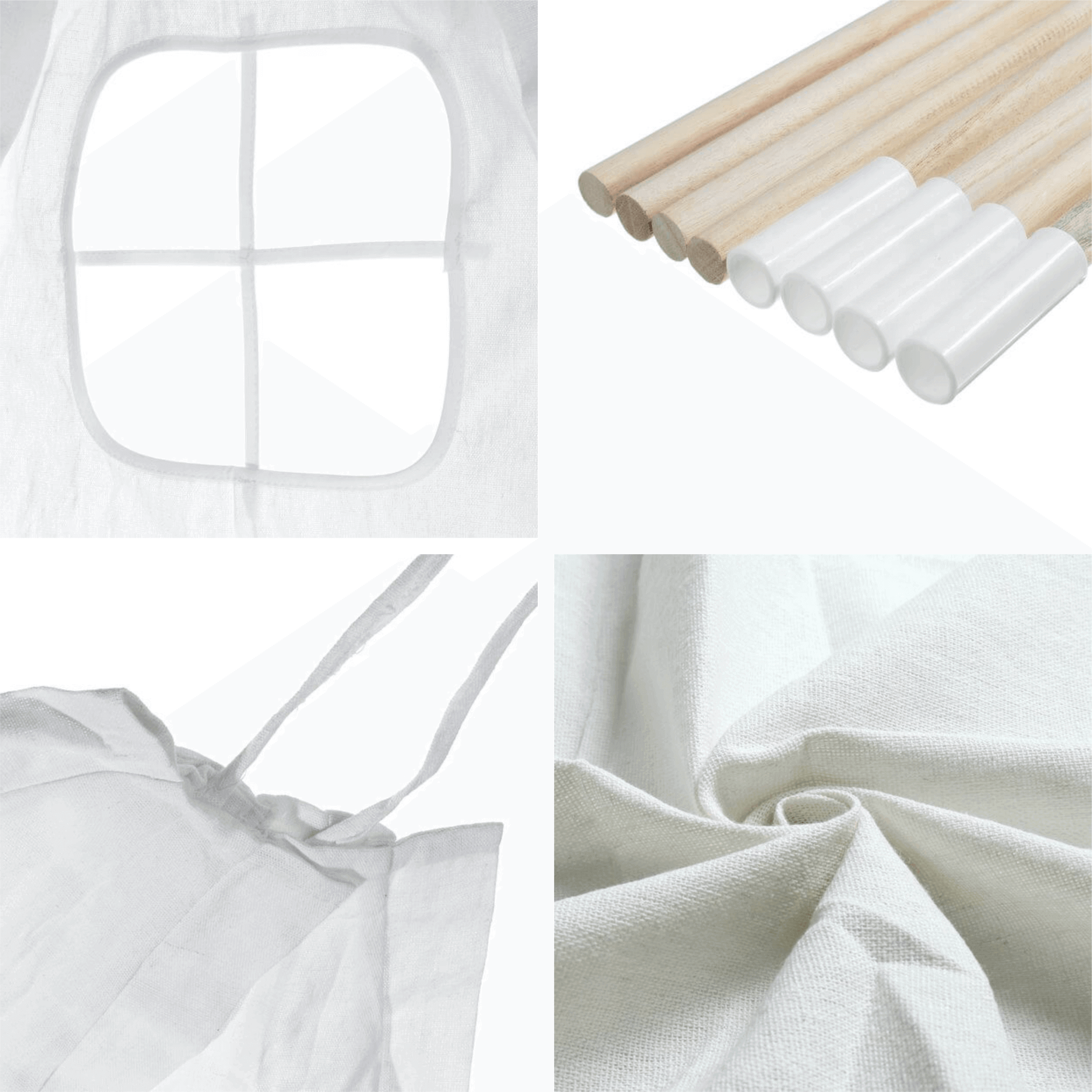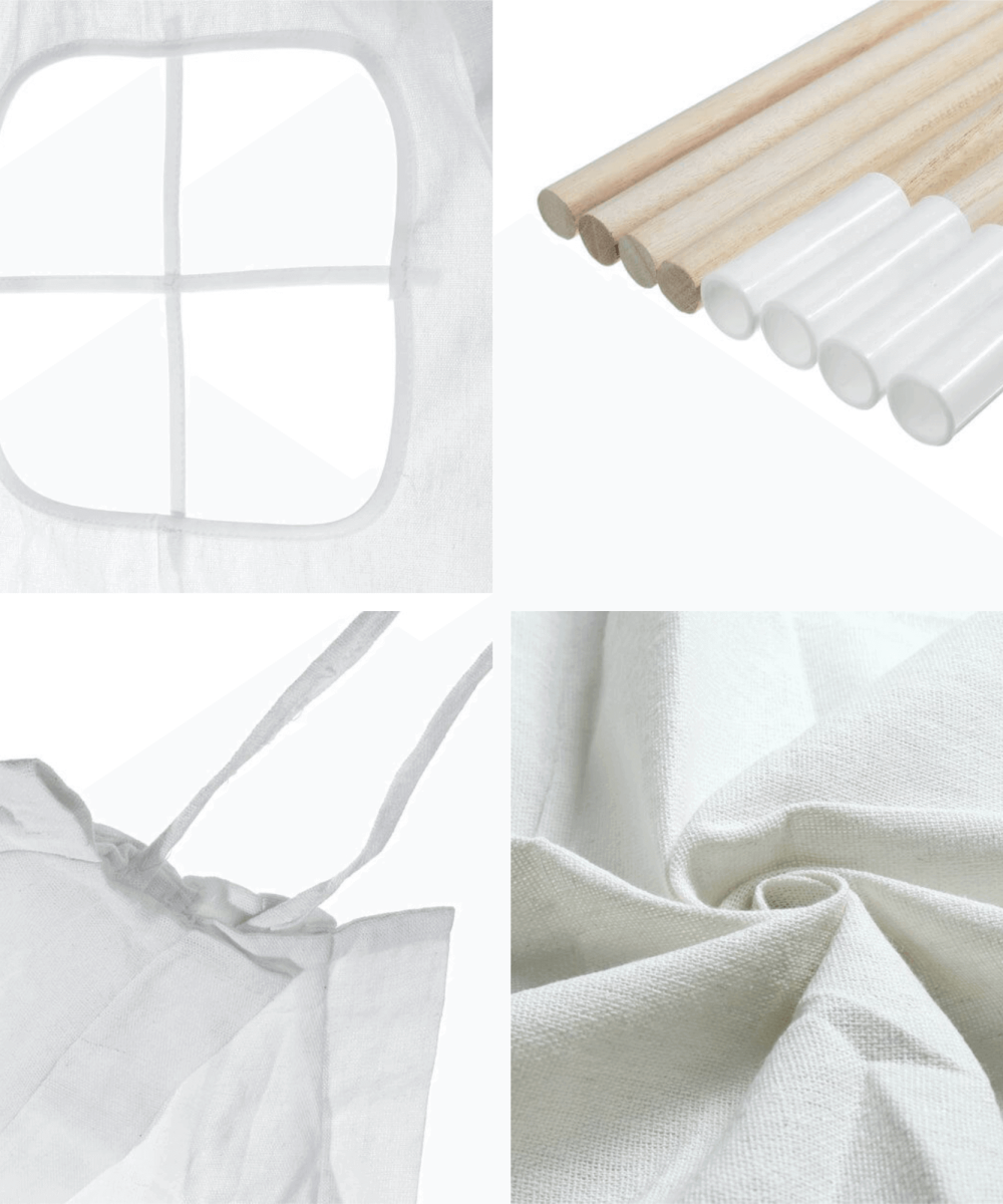 הבד עשוי כותנה ארוגה גס, האוהל לילדים מורכב מ – 4 מקלות עץ וניתן לקיפול בקלות,