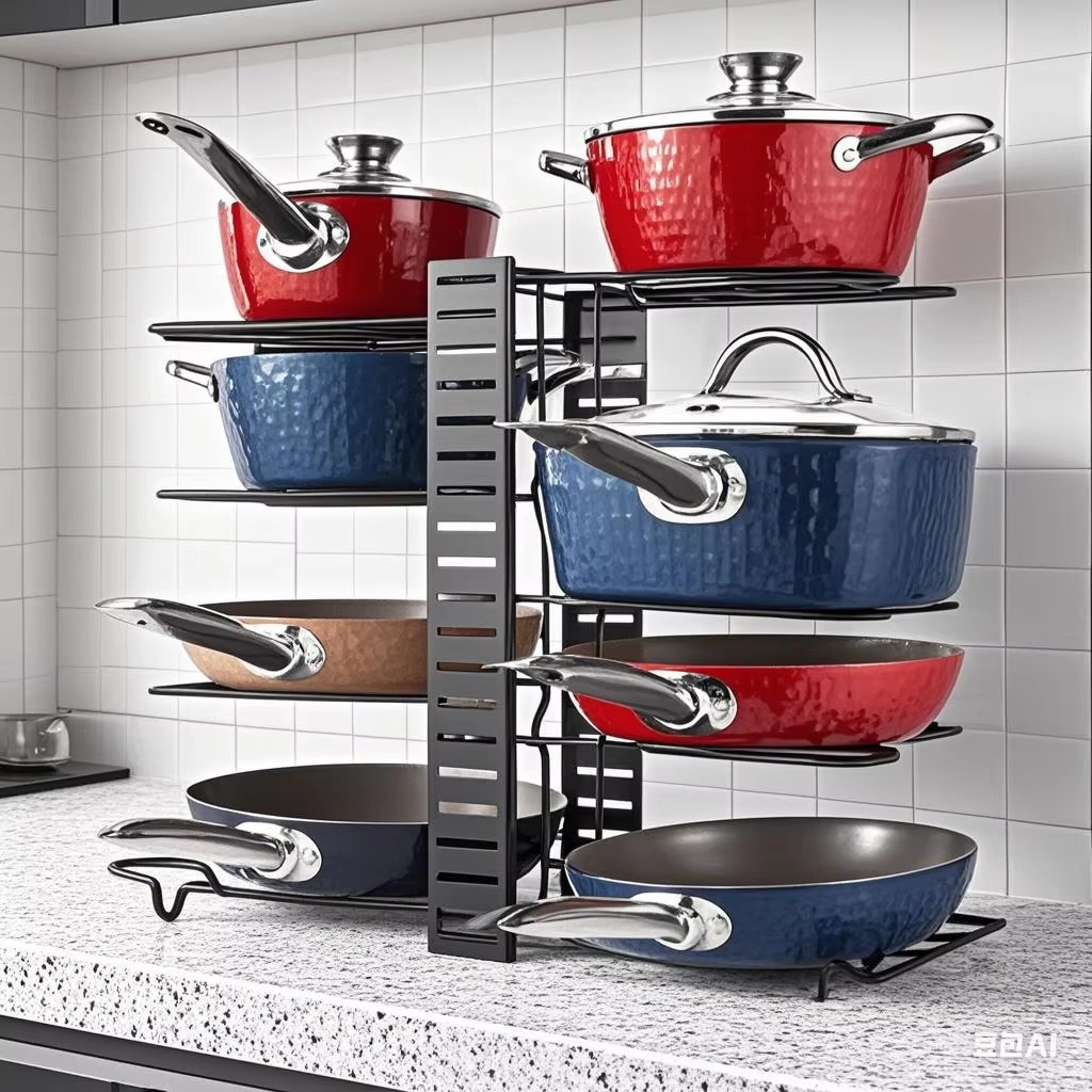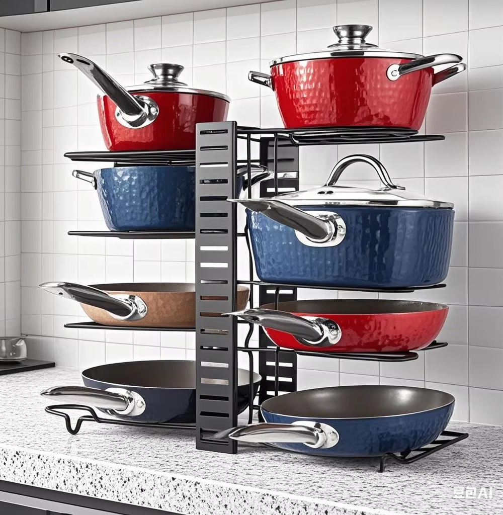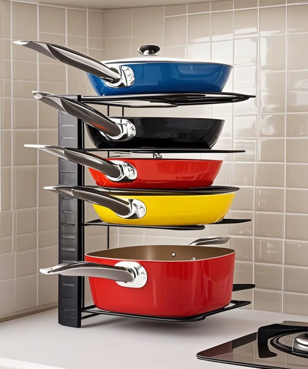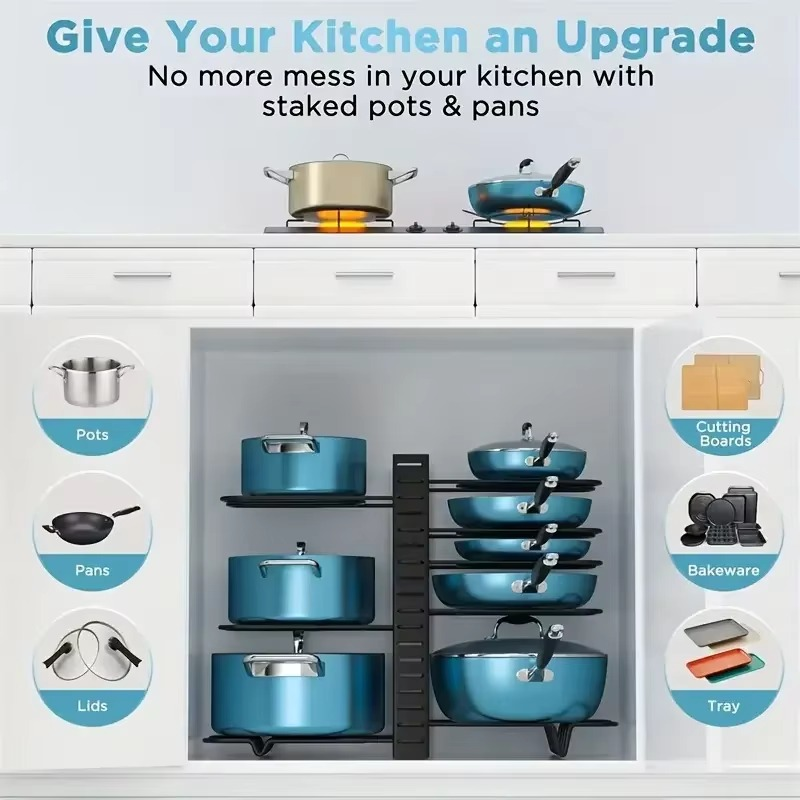 ארגונית סירים ומחבתות 8 שכבות מתכווננת – פתרון מושלם לסדר במטבח!