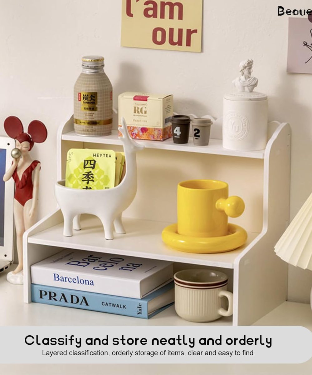 ארגונית שולחנית עם מדפים למוצרי טיפוח או ספרים