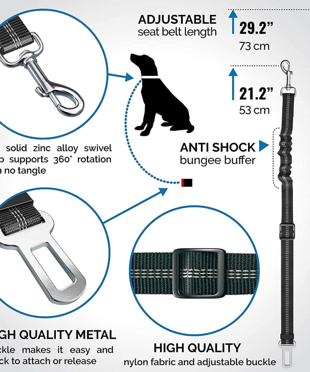 חגורת בטיחות לכלב לתפיסת הרצועה ברכב, רצועת בטיחות אוניברסלית לחיבור ישיר לאבזם הרכב, כאשר אנחנו נוסעים ברכב הדבר הראשון שאנחנו עושים זה לחגור חגורת בטיחות, אנחנו כבר מודעים לחשיבות הדבר, ויודעים מה התוצאה של תאונות, כאשר יושבי הרכב לא היו חגורים או אפילו רק אחד מהם, אז במידה ויש לכם כלב תחשבו גם עליו, נכון שזה לא חובה, אבל זה מציל חיים, גם שלכם וגם של הכלב .
