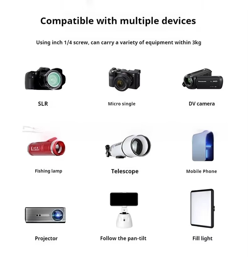 - ראש פנורמי 360°: ראש 3D לסיבוב 360° והטיה לזווית צילום אידיאלית.
