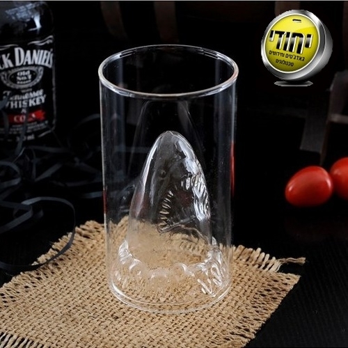 כוס משקה. בצורת מלתעות כריש. כוס עשויה זכוכית.