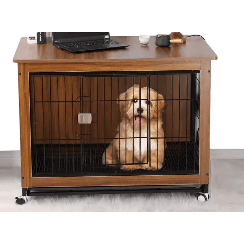 כלוב אילוף מעוצב לכלב בצבע עץ חום | שידה/שולחן | בטיחות ונוחות