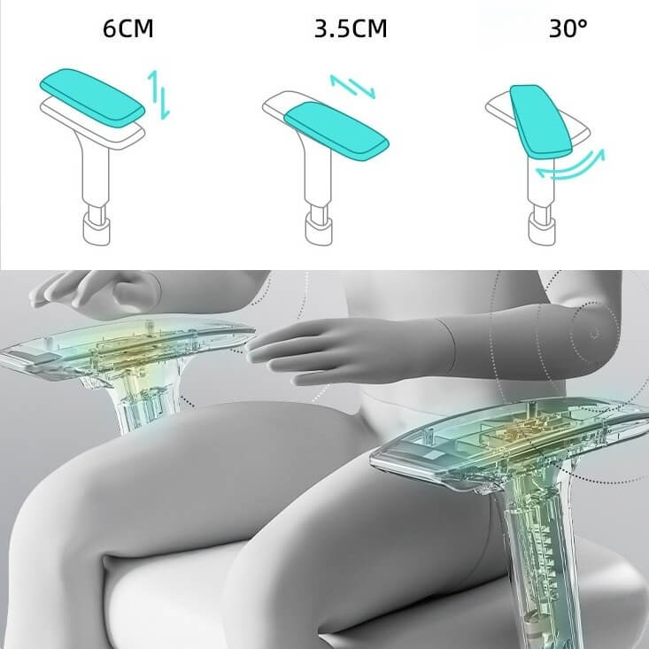 - משענות ידיים תלת מימדיות (3D): כוונון רב-כיווני להתאמה מושלמת לזרועות ולכתפיים, להקלה על עייפות ושמירה על תנוחה בריאה.