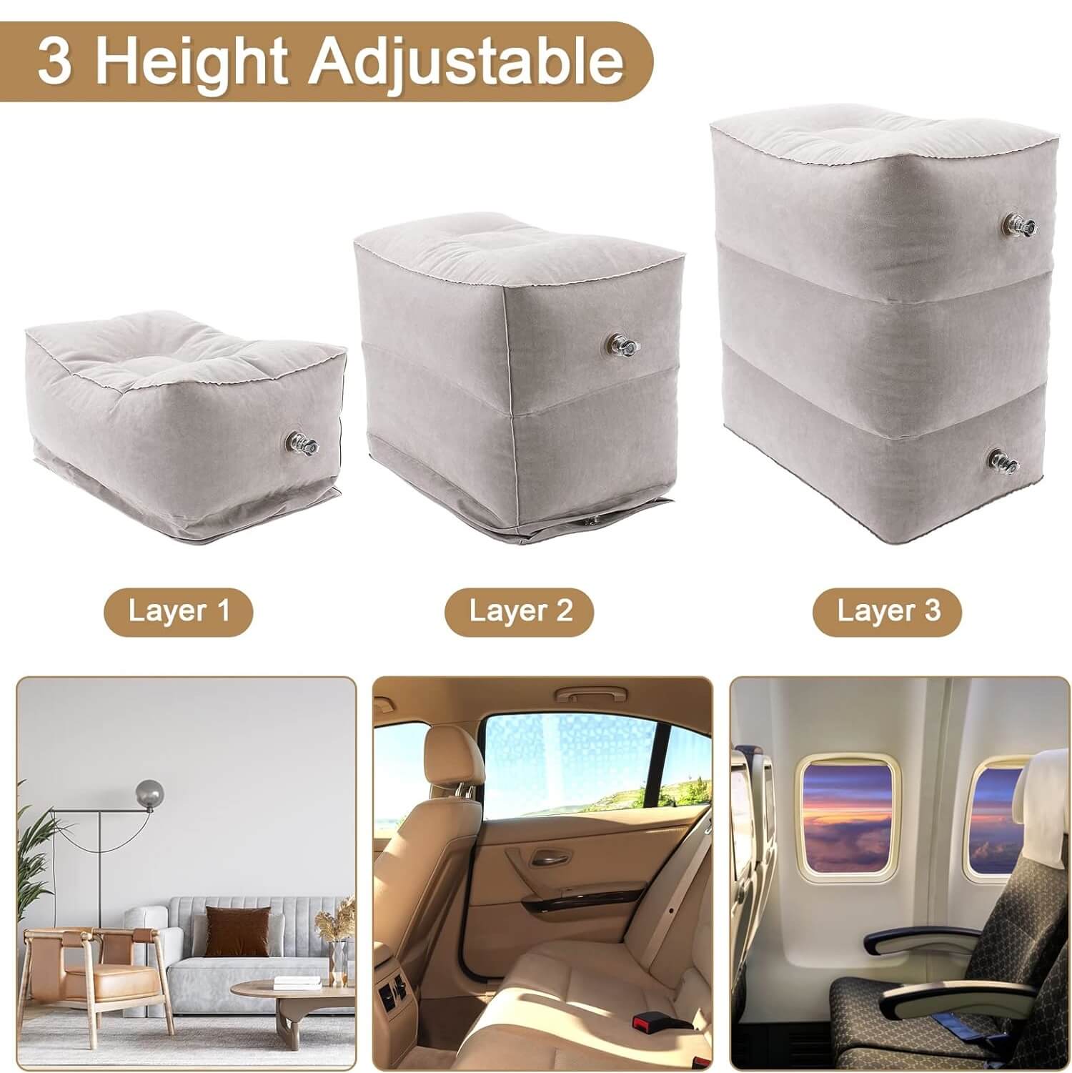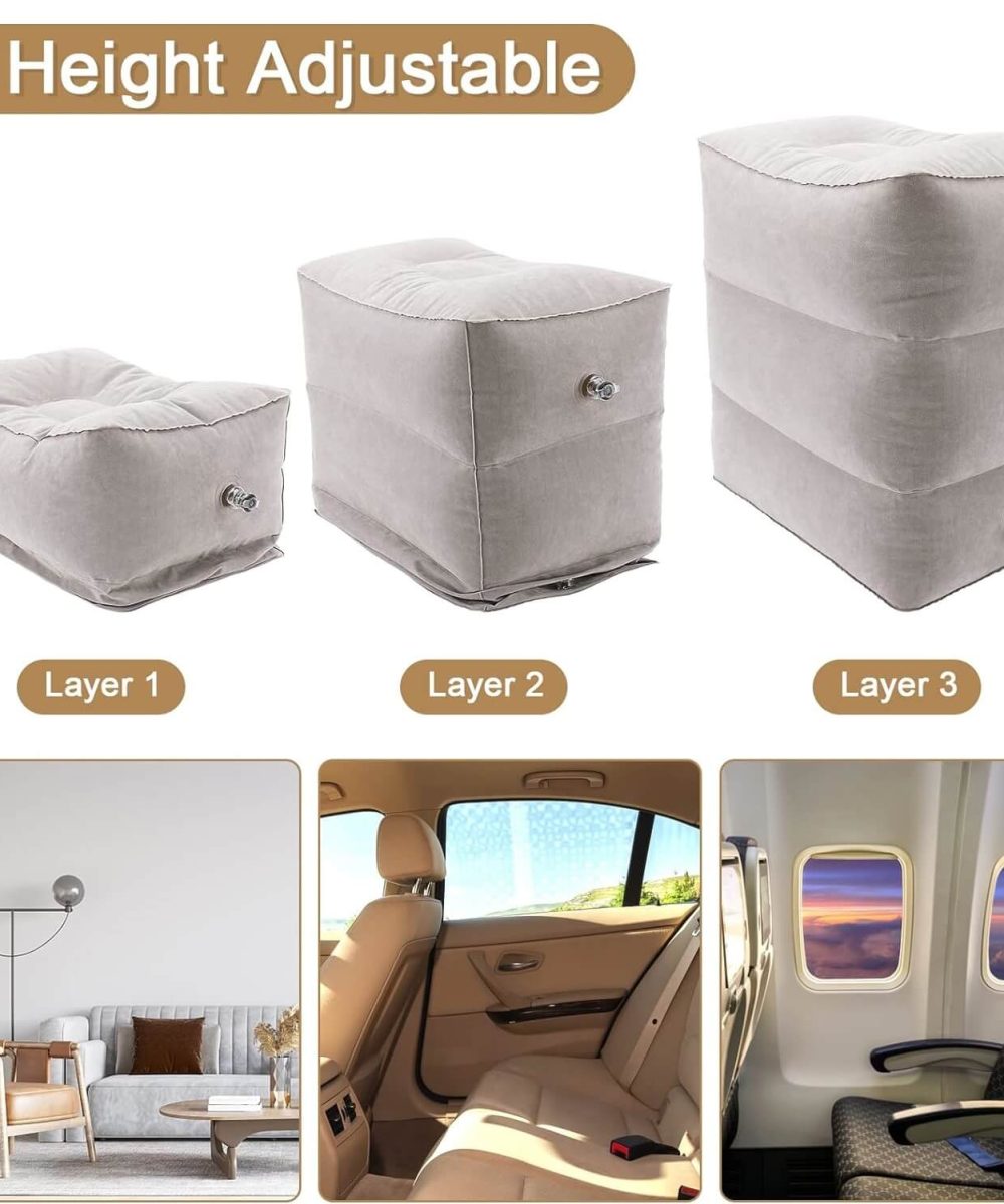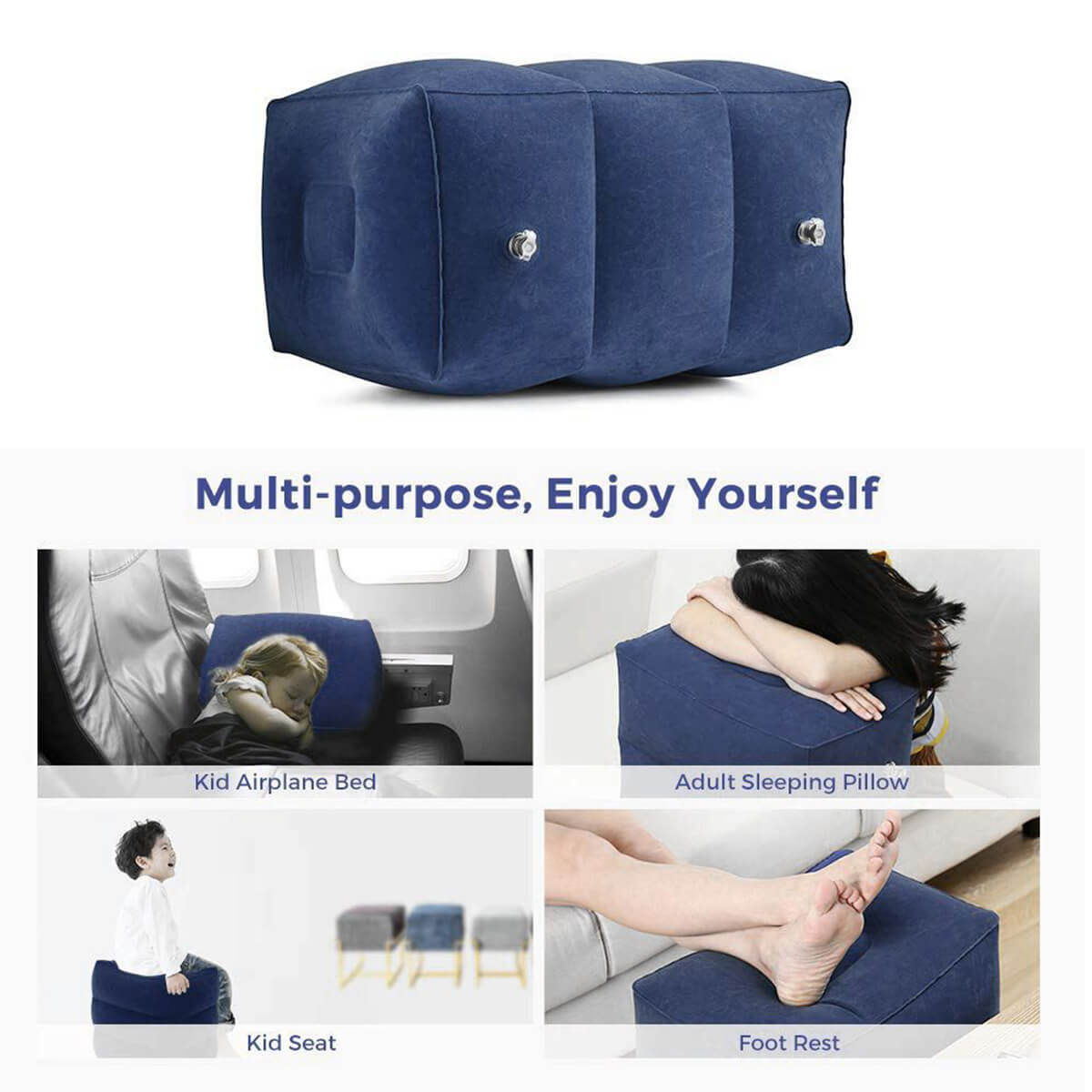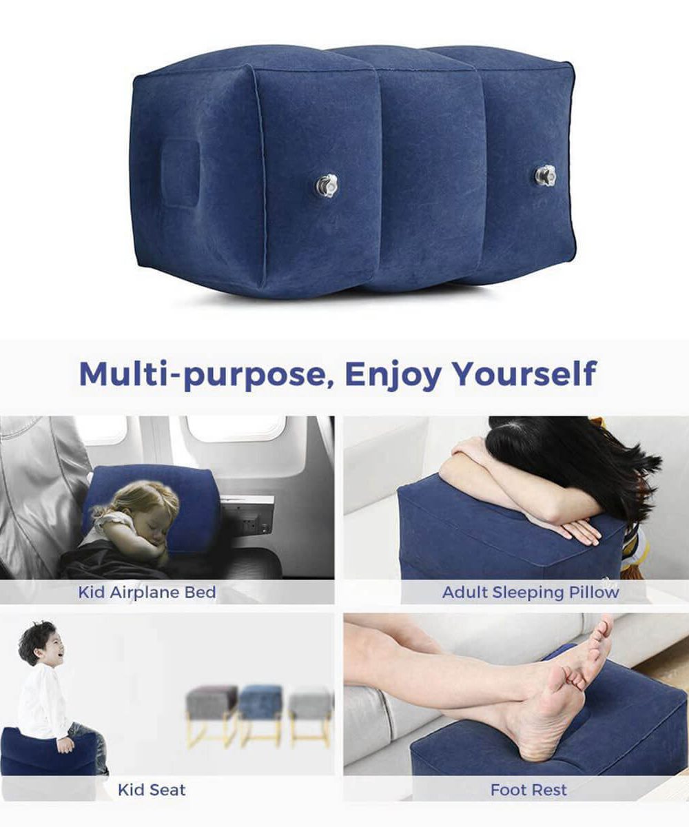 כרית מתנפחת רב שימושית לילדים ומבוגרים. עבור הילדים תוכלו לשים אותה בין מושבי המטוס ובכך להפוך את המושב למיטה שהילד יוכל לשכב עליה, ולמבוגרים הכרית יכולה לשמש כהדום לרגליים לישיבה נוחה יותר. לכרית שני שסתומים על מנת לתת לה גבהים שונים לפי הצורך.