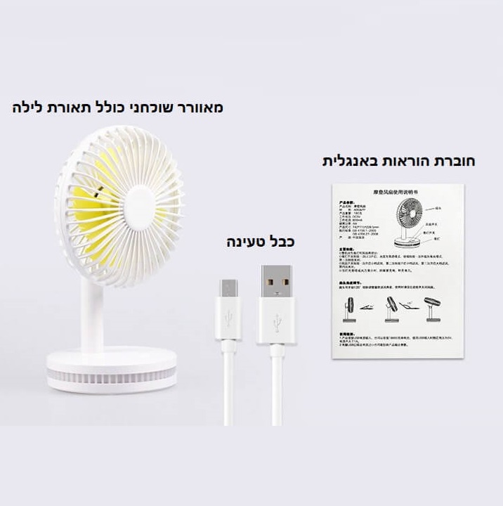 המאוורר שישדרג לכם את החדר וישמור על תנועת האוויר בחדר. מאוורר שולחני נטען ונייד חזק ואיכותי בעל 2 מצבים של תאורת לילה שמוסיף לאווירת החדר או המשרד. מתנה מצוינת לבית או למשרד המתאימה לכל אחד ואחת. למאוורר מראה אלגנטי ופשוט ובעל פרקטיות גבוהה.
