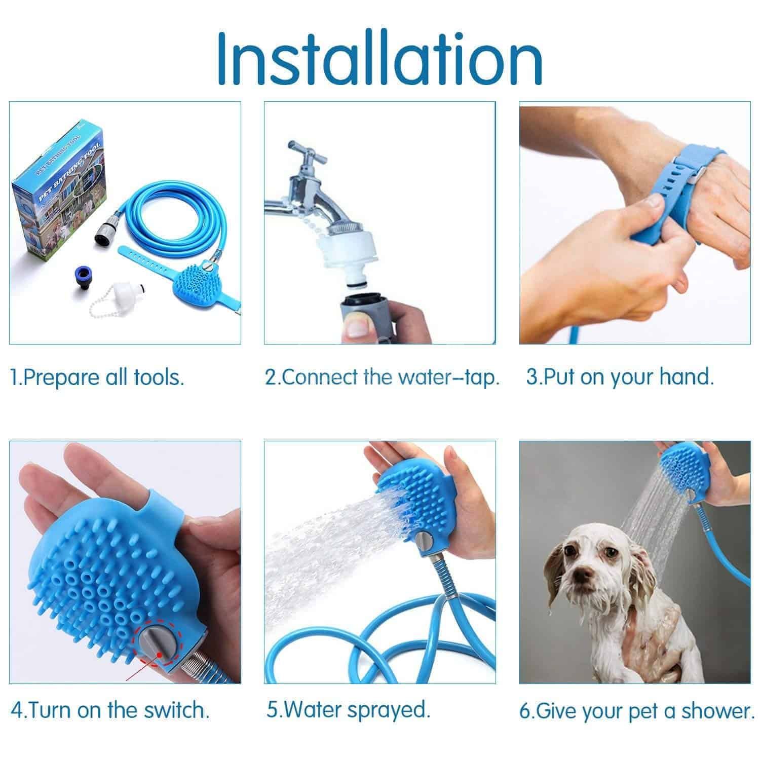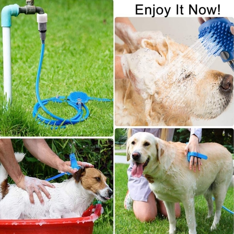 מברשת וצינור לניקוי הכלב, סט ניקוי קל לניקוי הכלב או חיית המחמד שלכם, הסט כולל מברשת וצינור. הצינור מתחבר לברז הגינה או לברז האמבטיה, המברשת מורידה את לחץ המים וכתוצאה מכך מורידה לחץ וחרדות מחית המחמד בזמן הרחצה. יעיל במיוחד לכלבים שנלחצים מתהליך הניקוי. קל במיוחד לשימוש, מחברים לברז המים. מלבישים את הכפפהמברשת על היד ומלטפים את חית המחמד תוך כדי ניקוי. כמו כן ניתן לשלוט בעוצמת הזרם ישר מהמברשת.