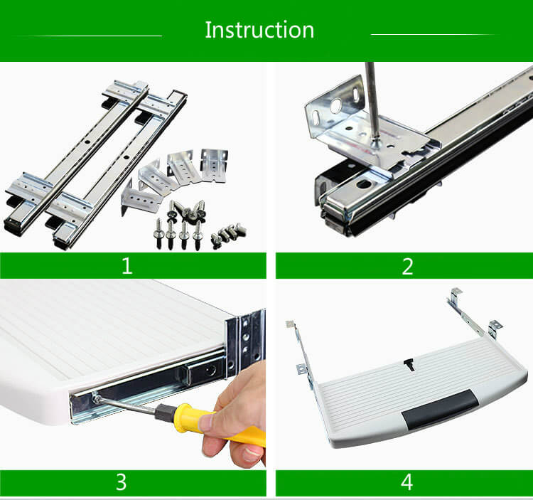 מכירים את זה שאין לכם מקום על שולחן המחשב והכל צפוף? המגירה הזאת היא הפתרון. מגירה נשלפת למקלדת מפלסטיק קשיח כולל תא לציוד משרדי קטן או חפצים קטנים. המגירה נעה בקלות על מסילות מתכת ומורכבת בפשטות כמעט על כל שולחן.