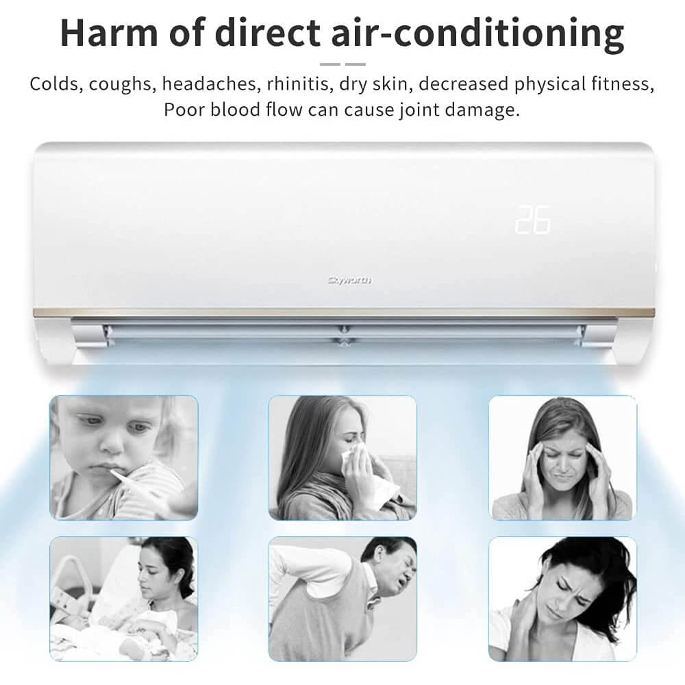הסככה עשויה מפלסטיק מחורר אשר מפזר את עוצמת קירורו של המזגן, כך שכיוון הרוח אינו מגיע ישרות אל גופכם וגורם לשרירים להיתפס. התקנת הסככה נעשית בקלות סביב המזגן, עם יכולת התכווננות של 180 מעלות, כך שיותאם בדיוק לנוחיותכם. מותאם במיוחד לחדרי ילדים, חדרי שינה למבוגרים, סלון ועוד.