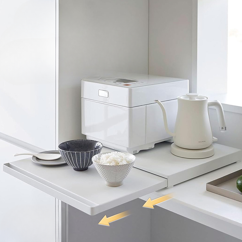 - הגדלת שטח העבודה: המדף הנשלף מאפשר לך לנצל באופן מקסימלי את השטח במטבח, גם בארונות גבוהים.
