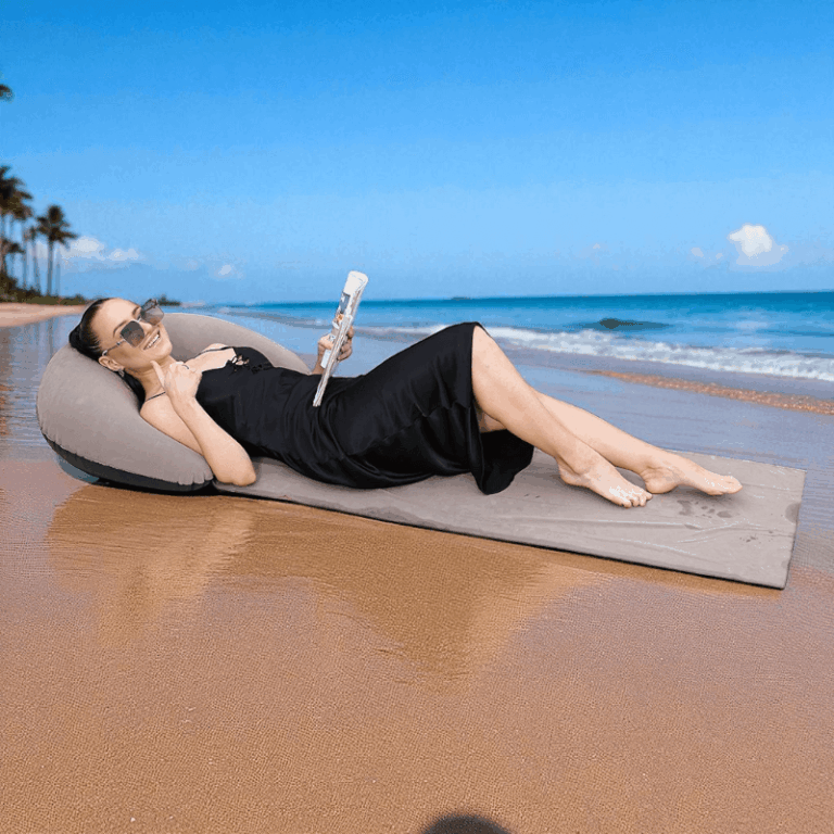 מחצלת חוף מתקפלת עם כרית מתנפחת – נוחות מושלמת לים, לבריכה ולגינה
