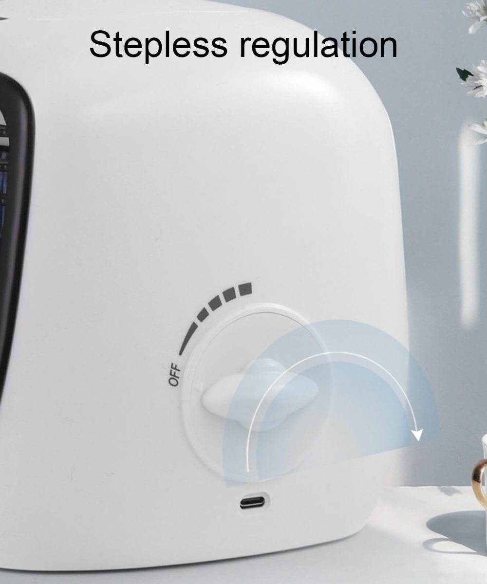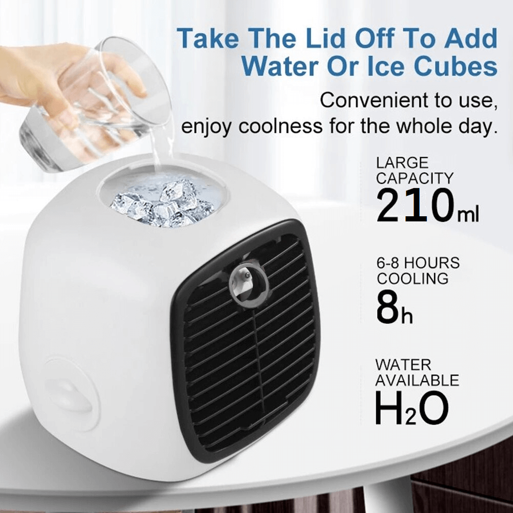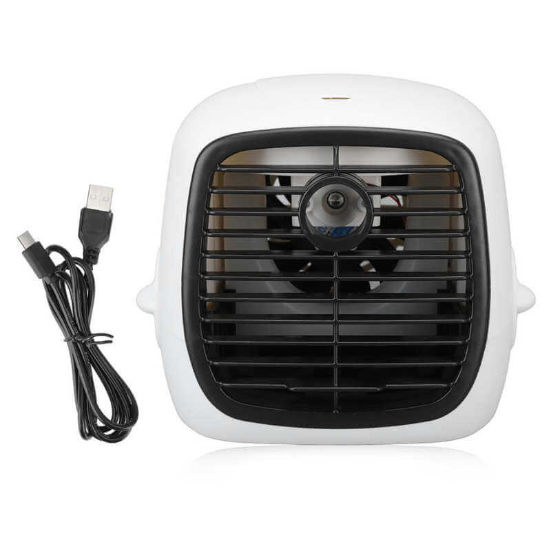 מיני מזגן (מצנן) שולחני מהפכני, וזה ממש לא מאוורר!. המצנן פועל ב 2 דרכים, בתוך המזגן קיים קרחון להקפאה, צריך רק למשוך את התריסים של המזגן ממש כמו מגירה, ומוציאים את הקרחון הלבן, פותחים אותו, ממלאים מים, ומקפיאים, לאחר מכן מכניסים את זה חזרה, והאויר שיצא מהמצנן יצא קר יותר משמעותית, דרך שניה היא להכניס מים וקרח בחלק העליון של המוצר, ואז המצנן גם יפעיל את הפונקציה של קירור על ידי פיזור לחות. מוצר מצוין לטיולים, ניתן לקנות סוללת חרום ולהשתמש במוצר גם מחוץ לבית, מוצר קל לשימוש, ולא תאמינו איך לא הכרתם אותו קודם.