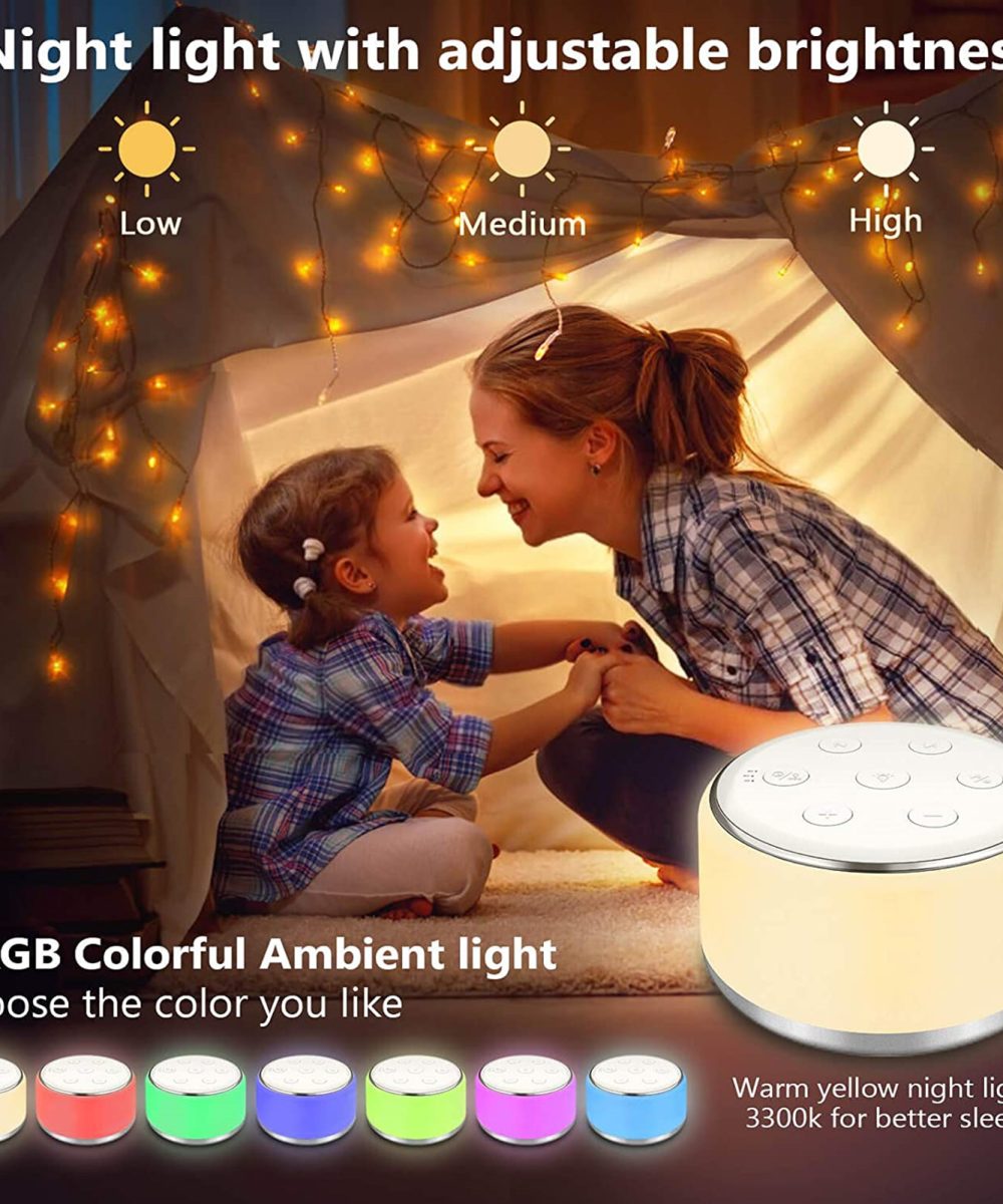 שפרו את איכות השינה שלכם ושל התינוק שלכם עם מכונת הרעש הלבן השולחנית שלנו. 34 צלילים מרגיעים, 7 צבעי תאורת לילה וטיימר לכיבוי אוטומטי. עיצוב קומפקטי ונייד, מושלם לשימוש ביתי או בנסיעות.
