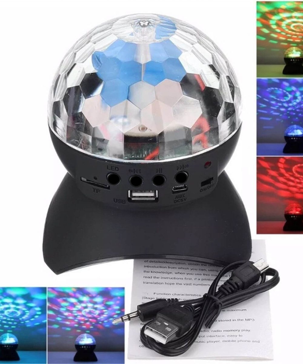 מנורת דיסקו כולל רמקול בלוטוס כניסת USB וחריץ לכרטיס זיכרון