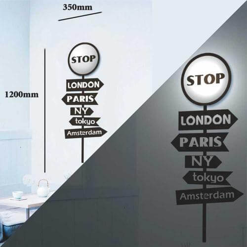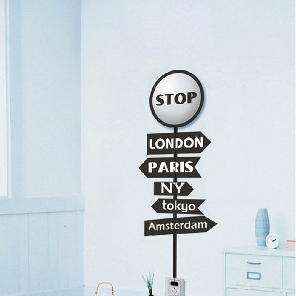 מנורת לילה מדליקה! עיצוב של תמרור דרכים STOP עם מדבקות נוספות לקישוט תחתית התמרור להגברת האפקט של תמרור דרכים. באמצעות שלט רחוק (כלול בערכה) ניתן להדליק, לכבות או להגביר ולהנמיך את עוצמת התאורה. פועל באמצעות סוללות (לא כלול בערכה) או באמצעות כבל USB (כלול בערכה) המתחבר לשקה USB במחשב או לספק כוח מתאים (לא כלול בערכה).