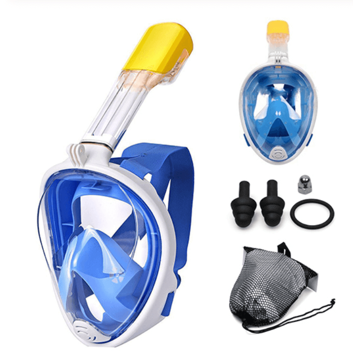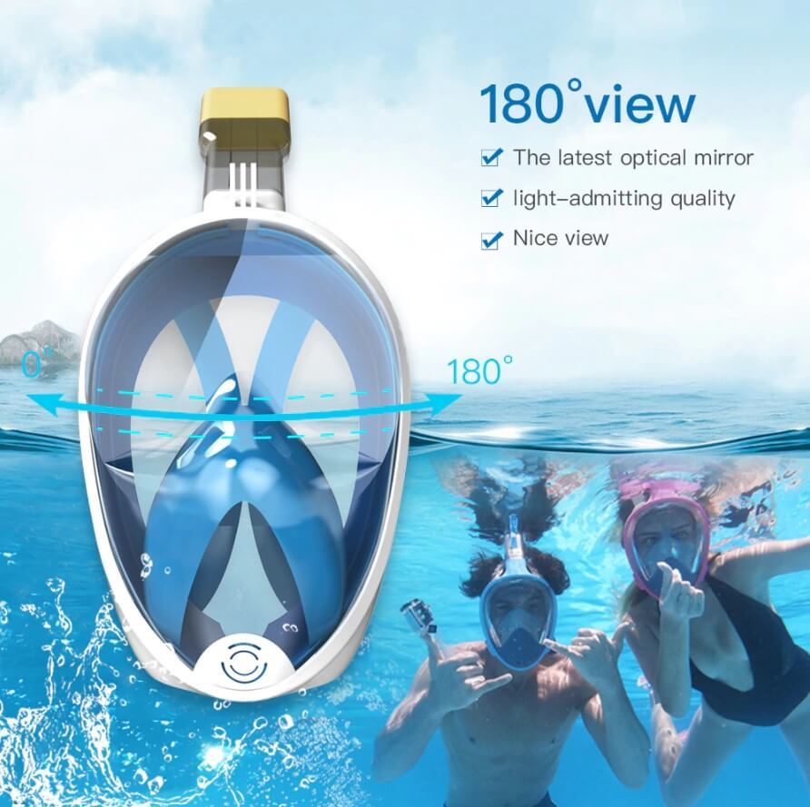 מסכת שנורקל מלאה למבוגרים או ילדים, מסכת הצלילה ששיגעה את העולם נחתה אצלנו במיוחד עבורכם! מסיכת צלילה מסיליקון לכל הגילאים. מסיכת פנים מלאה המקנה שדה ראיה רחב של 180 מעלות ואפשרות נשימה חופשית גם דרך האף וגם דרך הפה. לא מיועד לשחייה מיקצועית. למסיכה מנגנון מיוחד נוגד "ערפל" ואדים ואופציה לחיבור מצלמת GO-PRO (לא כלול) לצילום כל מהלך הצלילה.