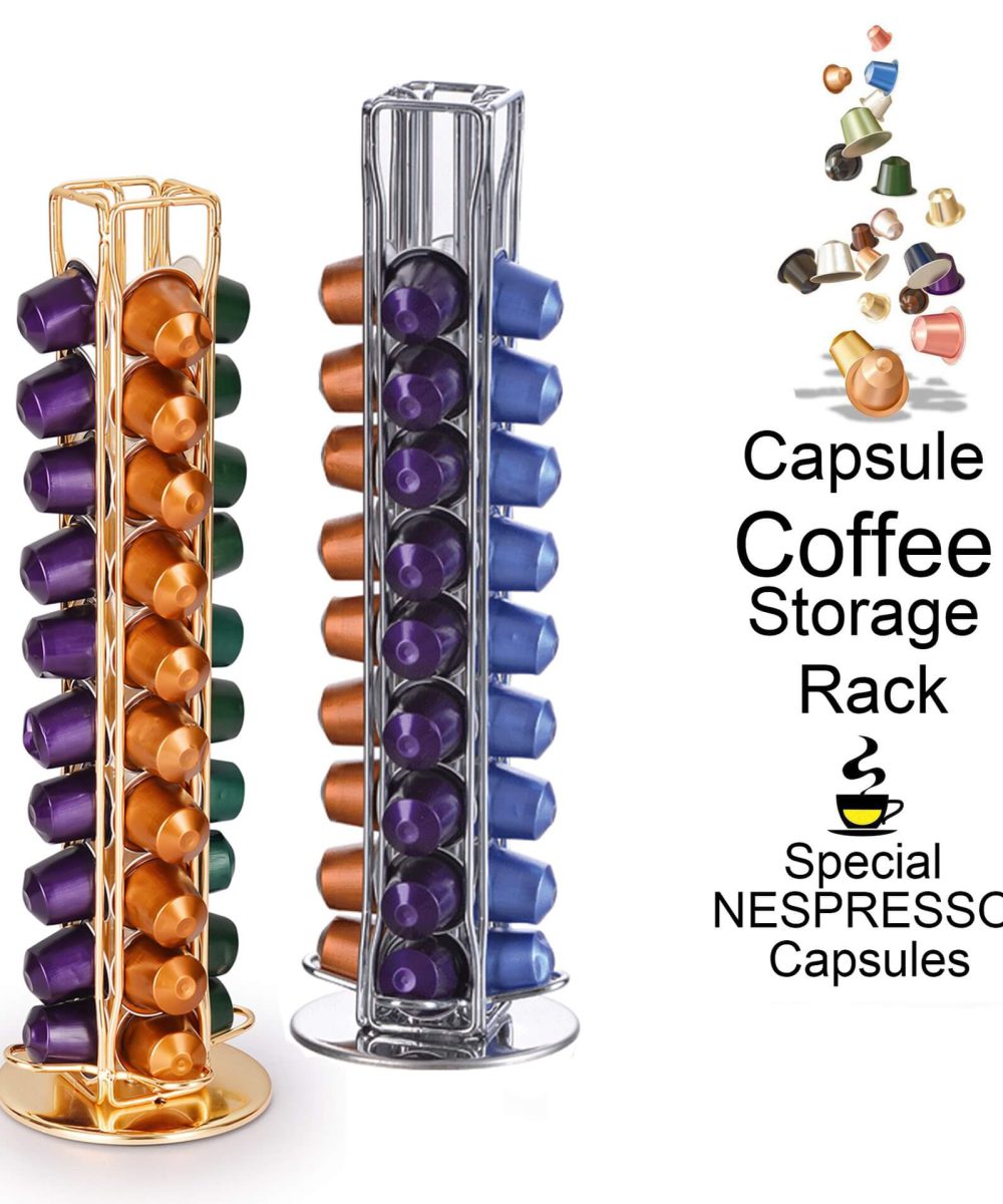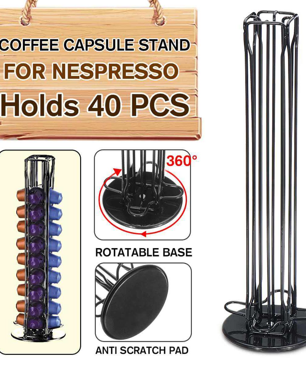 מעמד ל 40 קפסולות קפה מסתובב תואם נספרסו,מתאים בצורה מושלמת לקפסולות של נספרסו. יכול להתאים גם לקפסולות מחברות אחרות. מתנה מיוחדת לחובבי הקפה ולאנשים שיש להם מכונת קפה. מעולה במיוחד גם למשרדים