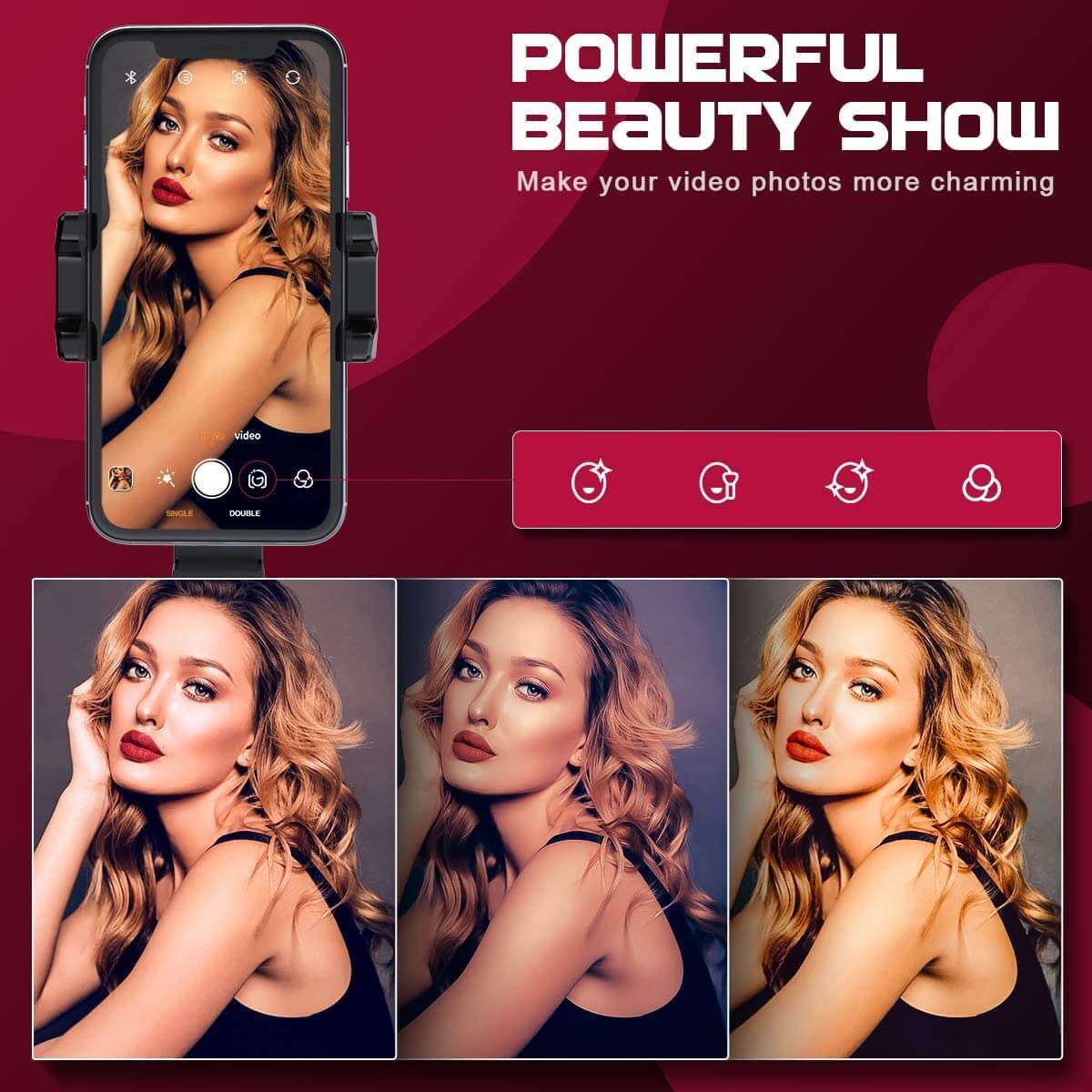 מתקן סלפי חכם אשר מסוגל לזהות אוביקטים או פנים ולעקוב אחריהם, מוצר מעולה למדריכי כושר, רקדנים או מרצים שרוצים שהמצלמה תעקוב אחריהם בזמן שהם זזים בחלל, המתקן מסוגל גם להתחבר לחצובה