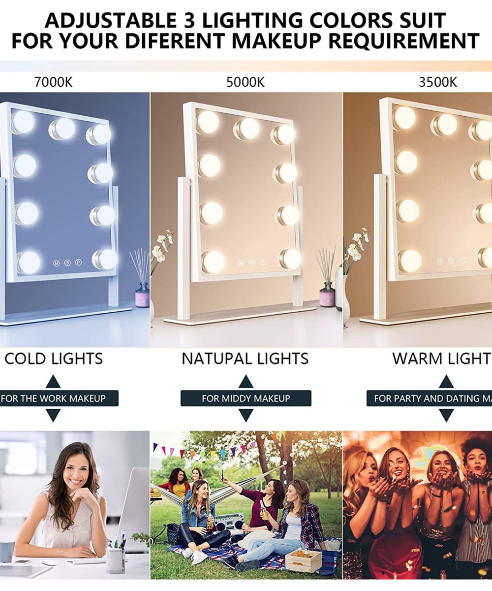 מראת איפור הוליוודית עם תאורת LED – 9 נורות, איפור מושלם בכל פעם