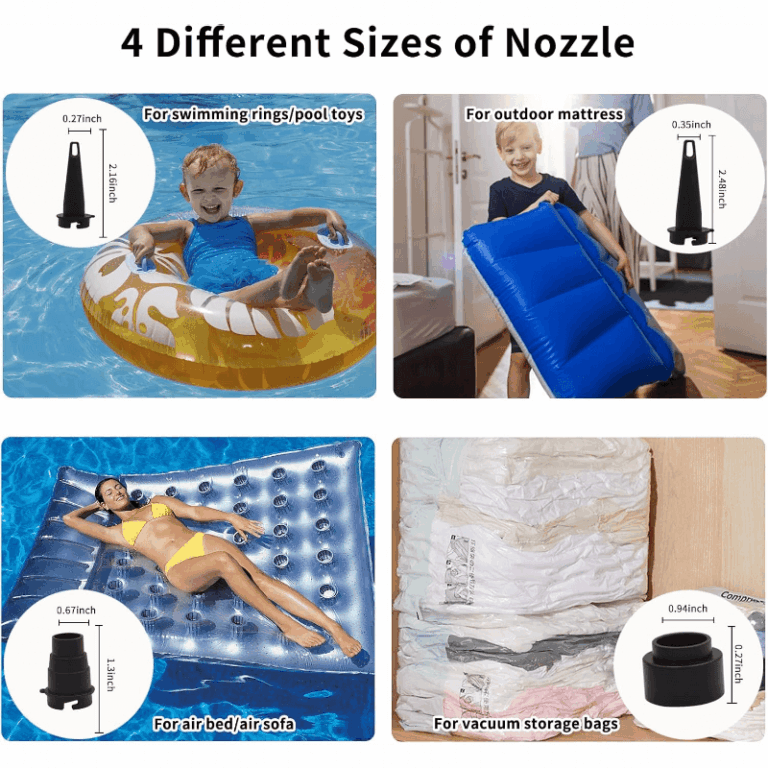 - פונקציונליות כפולה: מנפחת במהירות וגם מרוקנת אוויר, מאפשרת קיפול ואחסון קלים.