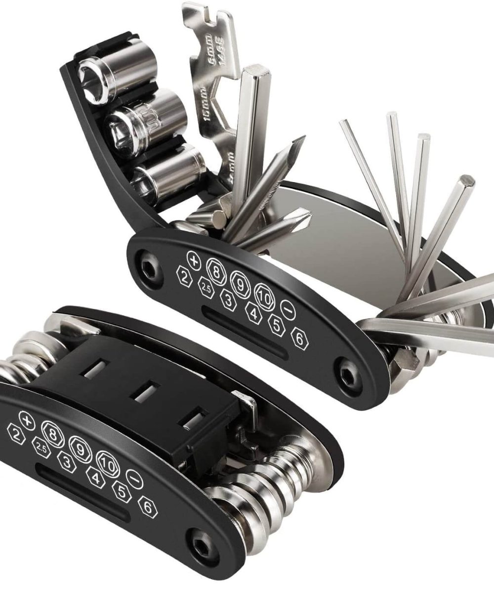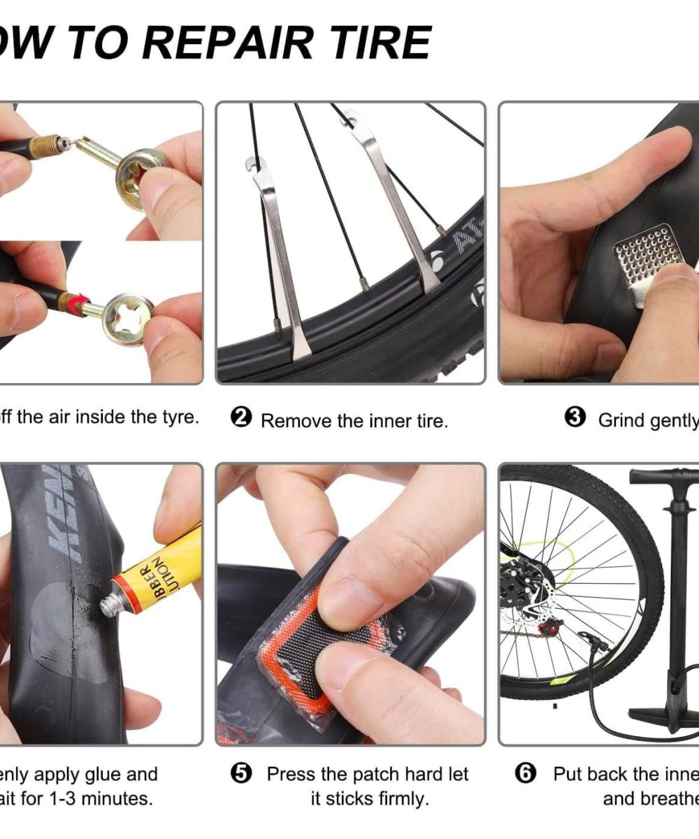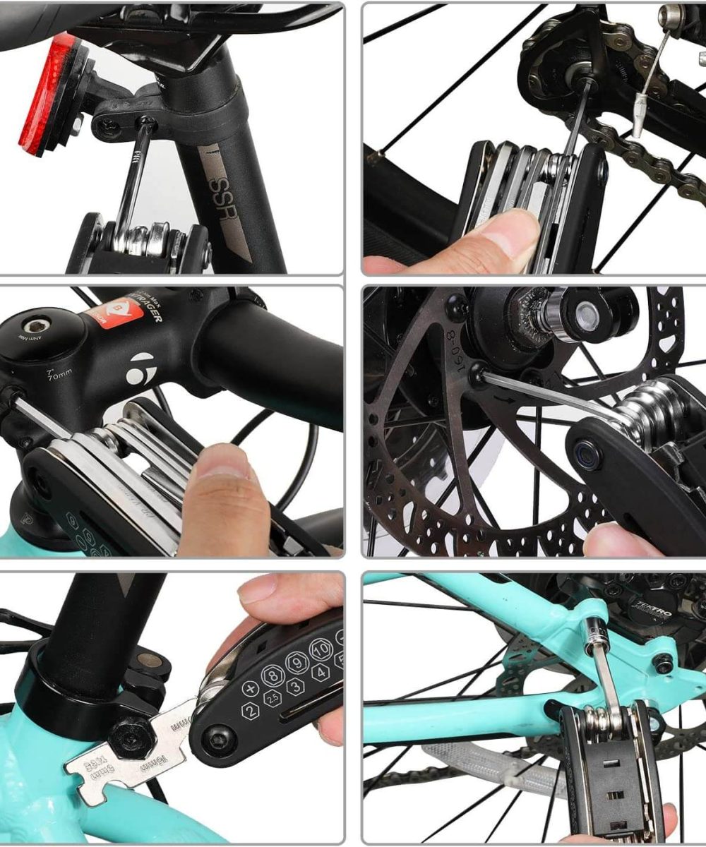 סט כלי עבודה לתיקון האופנים, סט חובה לכל בעלים של אופניים, הכולל מגוון של כלי עבודה, לתיקון כללי של האופנים, או תיקון פנצ'רים.מגוון רחב של אביזרים, מפתחות אלן,בוקסות, מברג שטוח, מברג פיליפס,כפות להוצאת הצמיד, סט מדבקות לתיקון פנצ'רים, בנוסף תקבלו נרתיק נשיא לשימוש גם בתור סט חרום