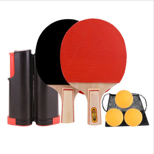 הערכה כוללת: רשת מתקפלת וכדור פינג פונג וזוג מחבטים (מטקות פינג פונג).