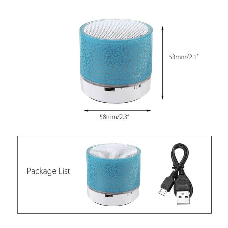 רמקול נייד ואלחוטי מאיר ומחליף צבעים, את הרמקול ניתן לחבר בבלוטוס למכשיר הטלפון, ניתן גם לחבר את הרמקול ישירות למחשב על ידי כבל , או להכניס כרטיס זיכרון ,מגוון כפתור למכשיר, העברת שירים קדימה אחורה עצירה ומענה לטלפון, הרמקול מאפשר גם שימוש כדיבורית לטלפון וכולל מיקרופון גודל הרמקול הינו 6CM
