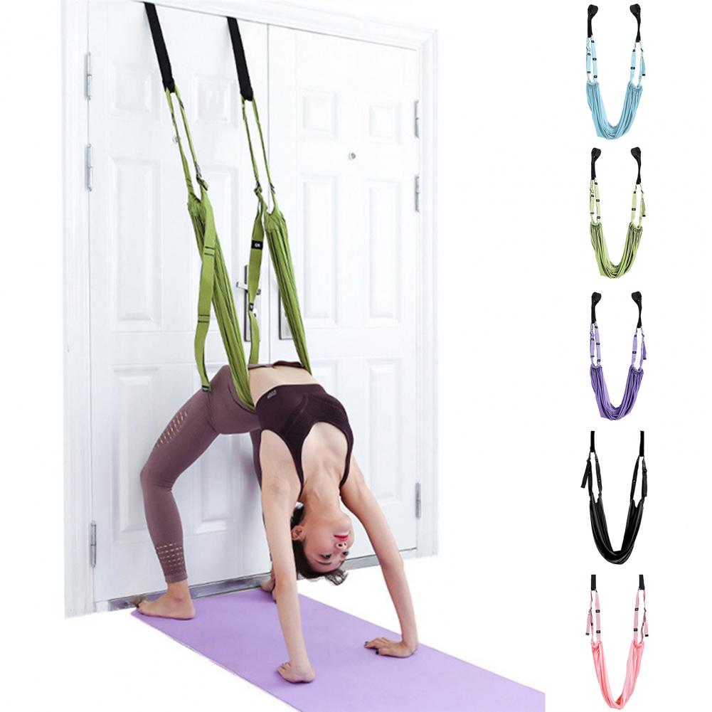 רצועת יוגה אווירית מתכווננת אלסטית לתלייה על דלת, ערסל יוגה לתרגול כושר, עמידת ידיים ואימון חבל, לנשים