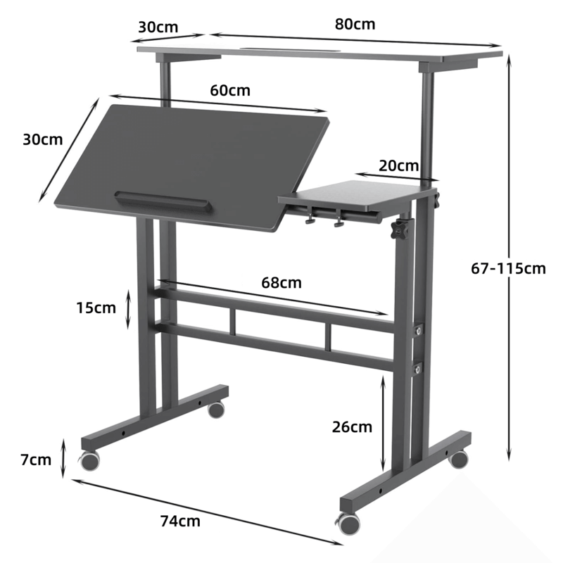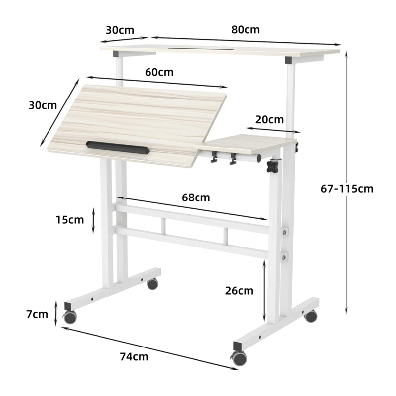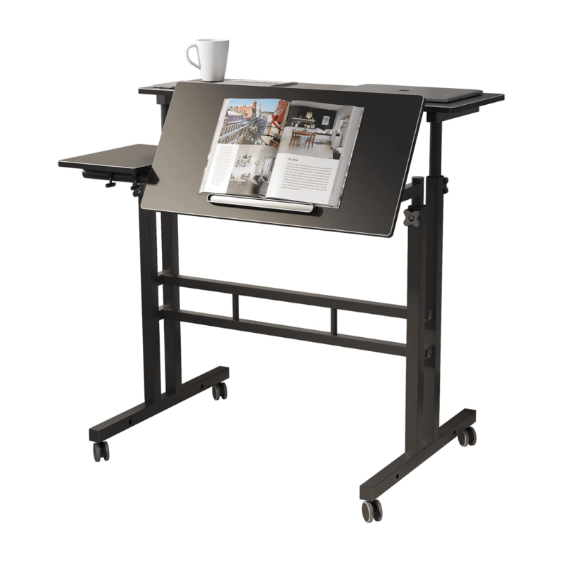 - משטח עבודה מתכוונן: התאמה נוחה של זווית המשטח לקריאה, כתיבה או עבודה במחשב.