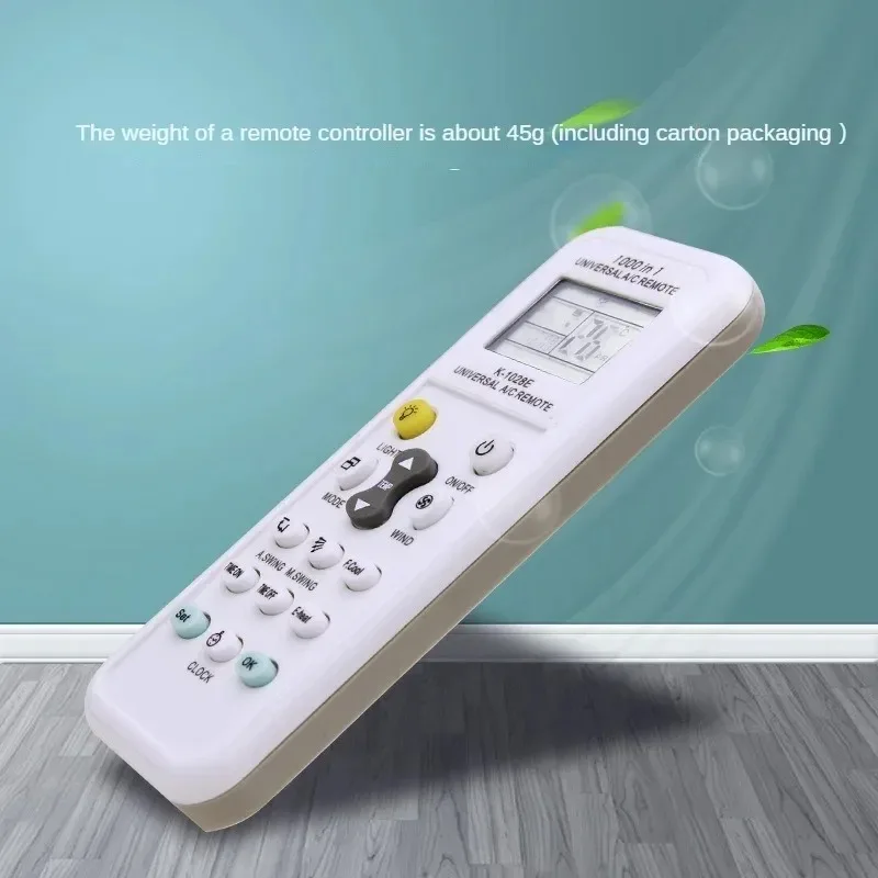 השתלטו על האקלים בביתכם בקלות עם שלט רחוק אוניברסלי חכם 1000 ב-1. שלט זה מתאים לשימוש עם מגוון רחב של מזגנים וכולל תצוגת LCD דיגיטלית עם תאורה אחורית, מה שהופך אותו לנוח לשימוש גם בחושך.