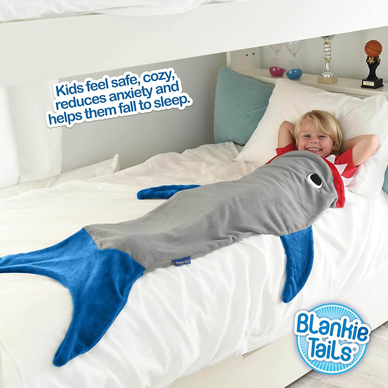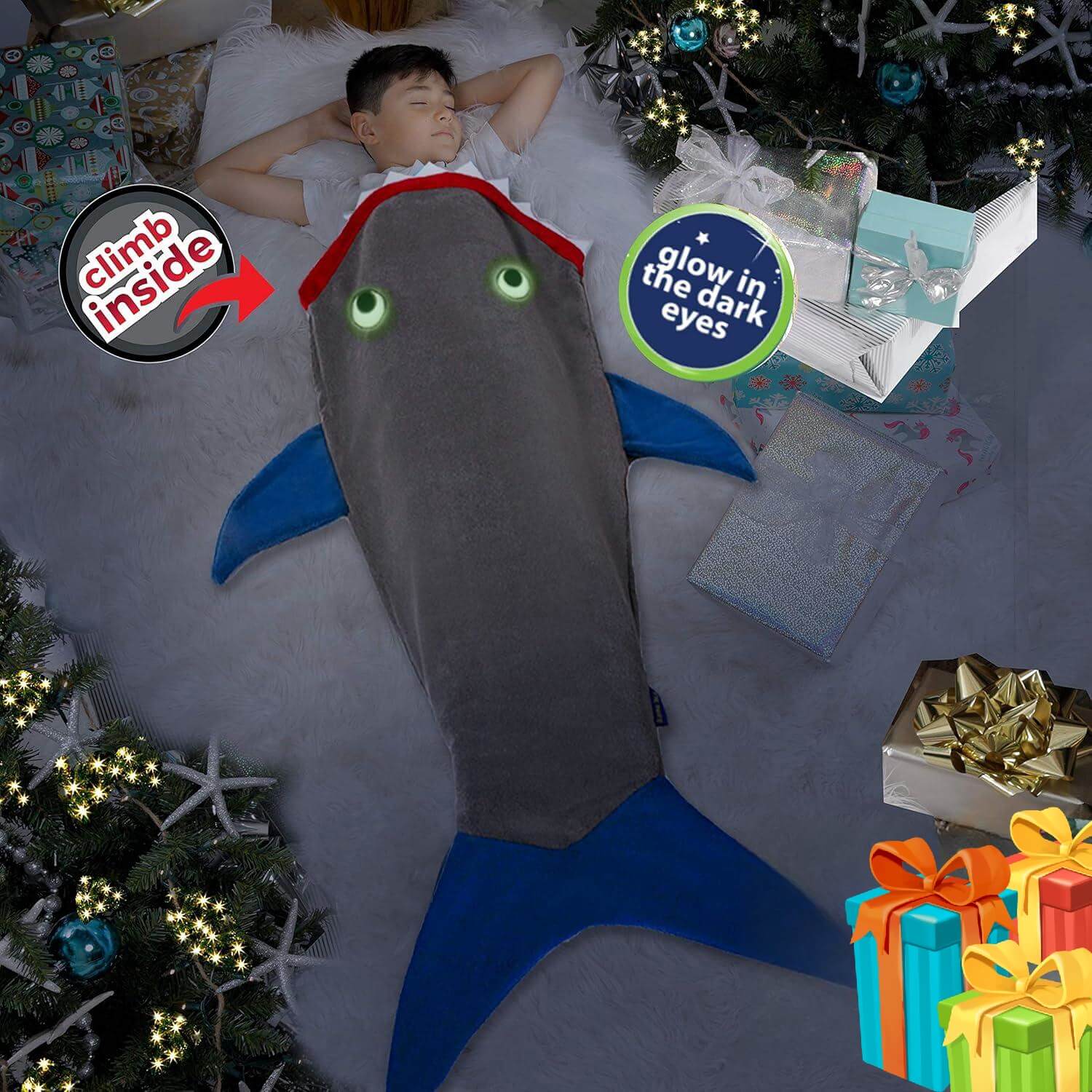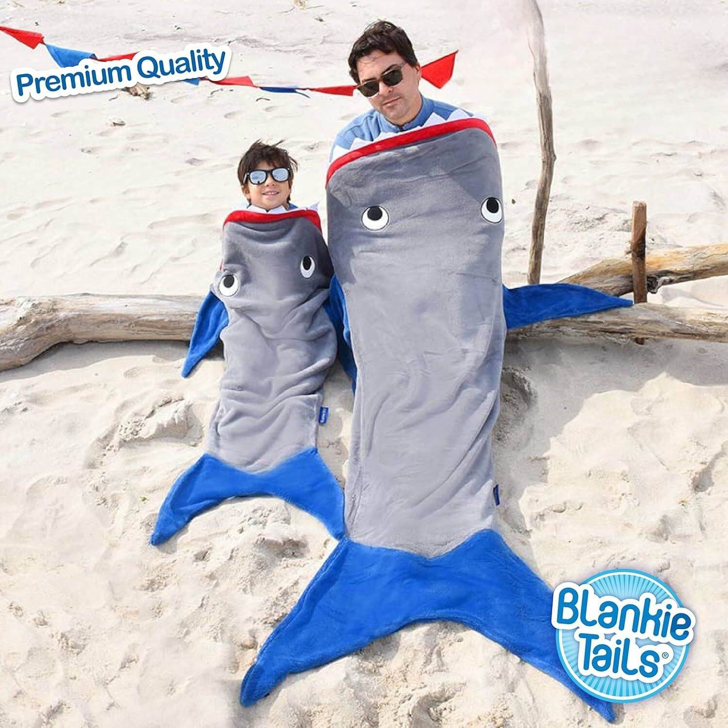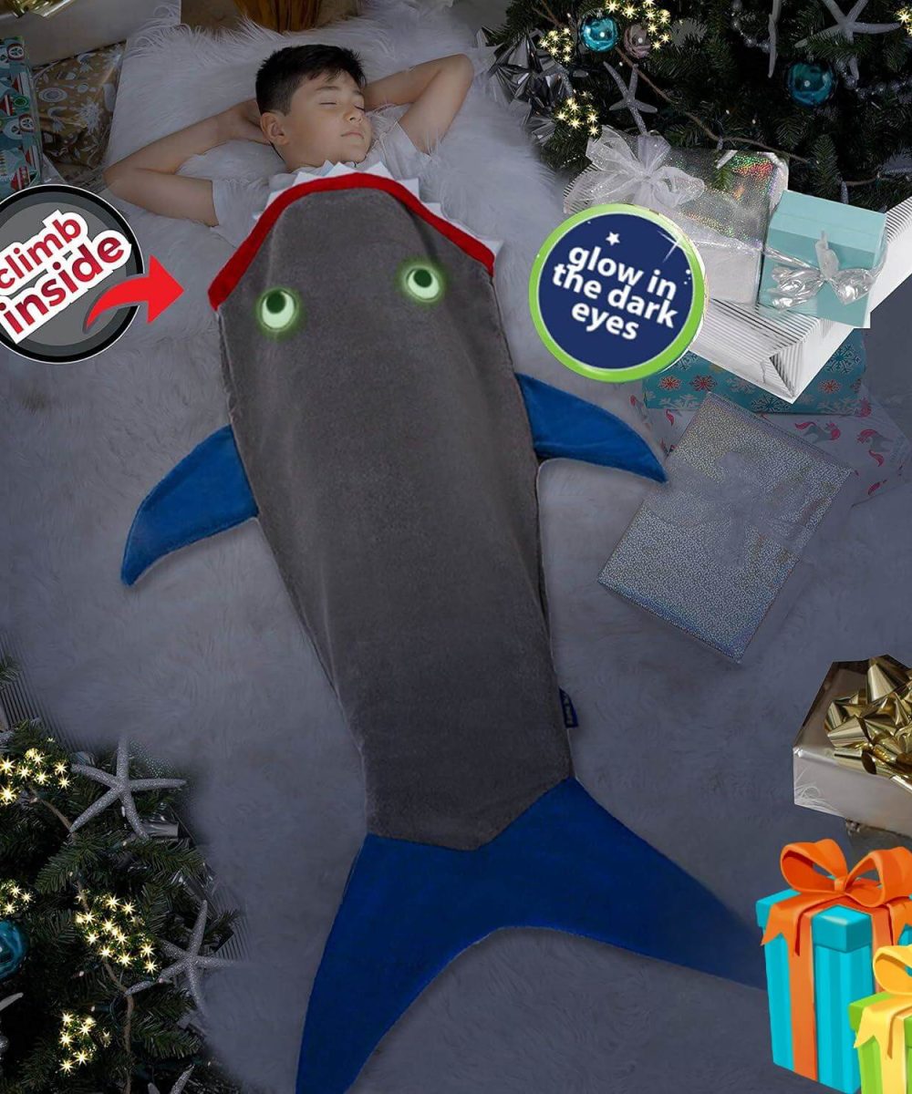 מחפשים דרך מקורית ומהנה להתחמם בחורף? שמיכת זנב הכריש הלבישה של Blankie Tails היא הפתרון המושלם! זוהי שמיכה נעימה במיוחד, דו צדדית, עשויה מפליז מינקי רך ונעים למגע, ועכשיו עם תוספת מדהימה – שיניים ועיניים זוהרות בחושך!