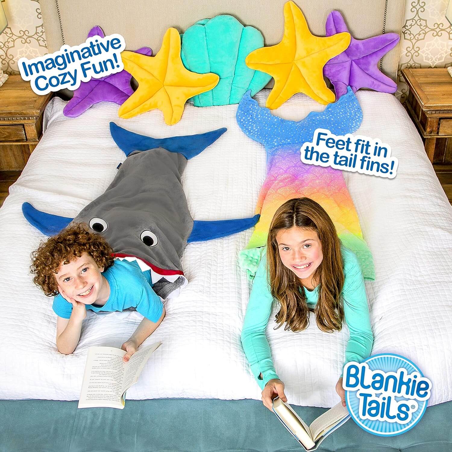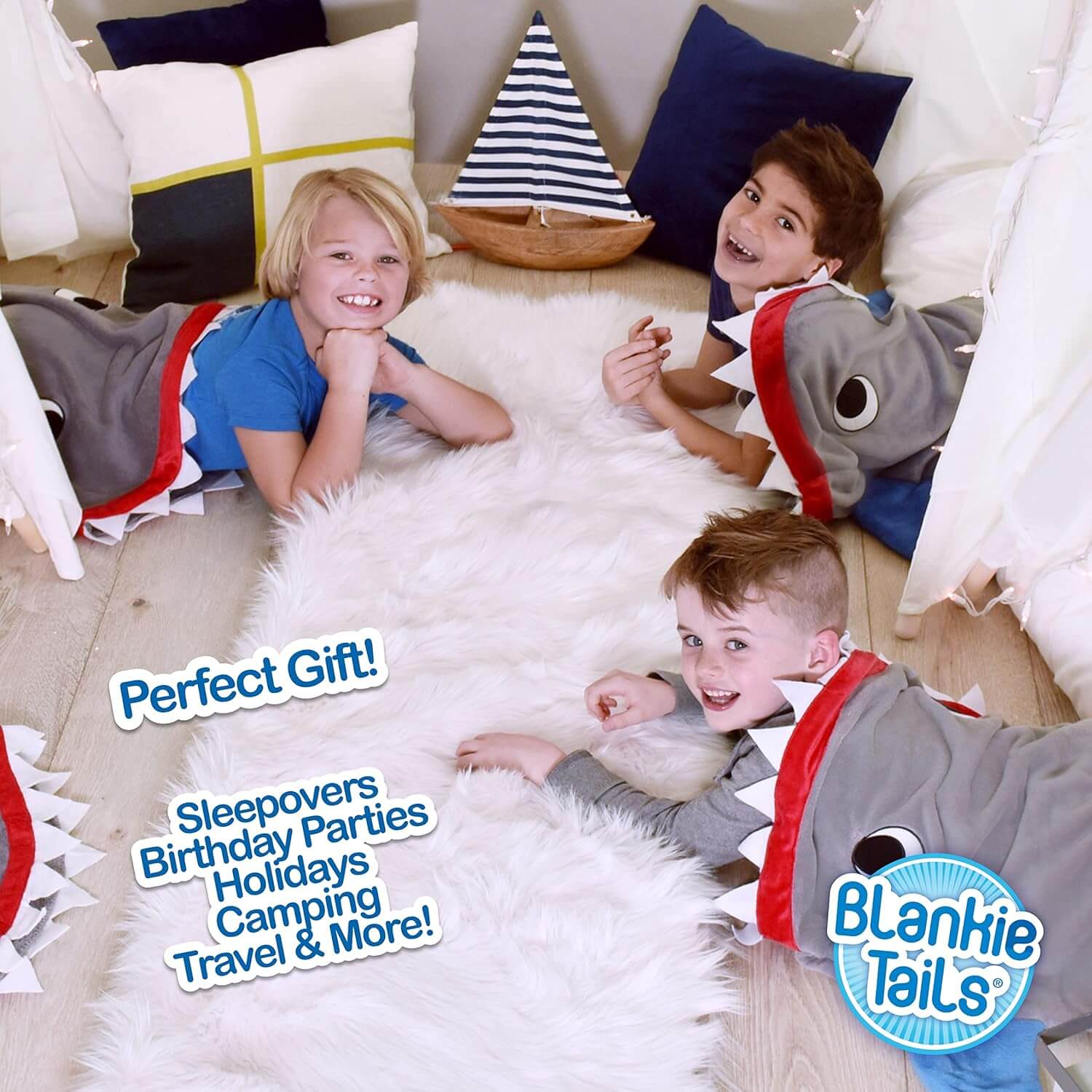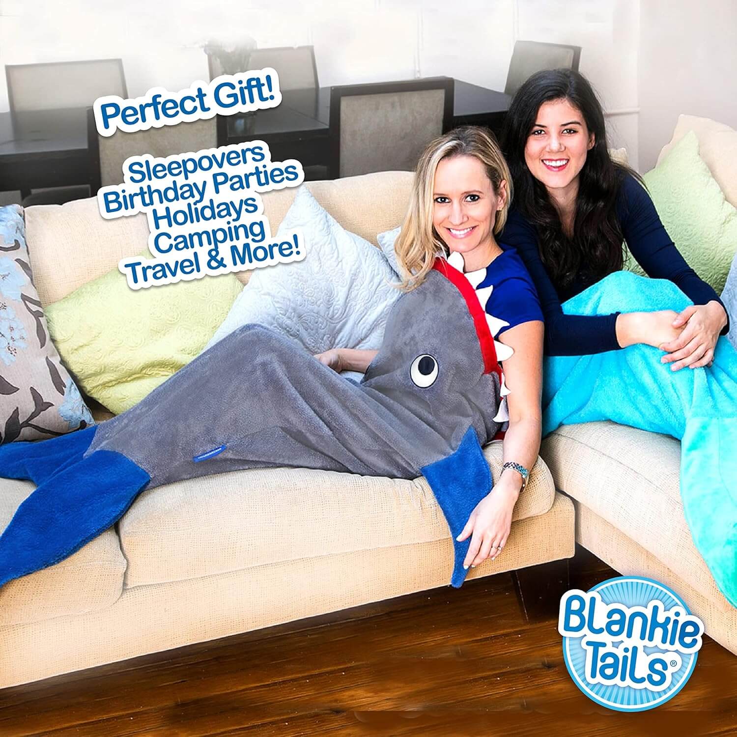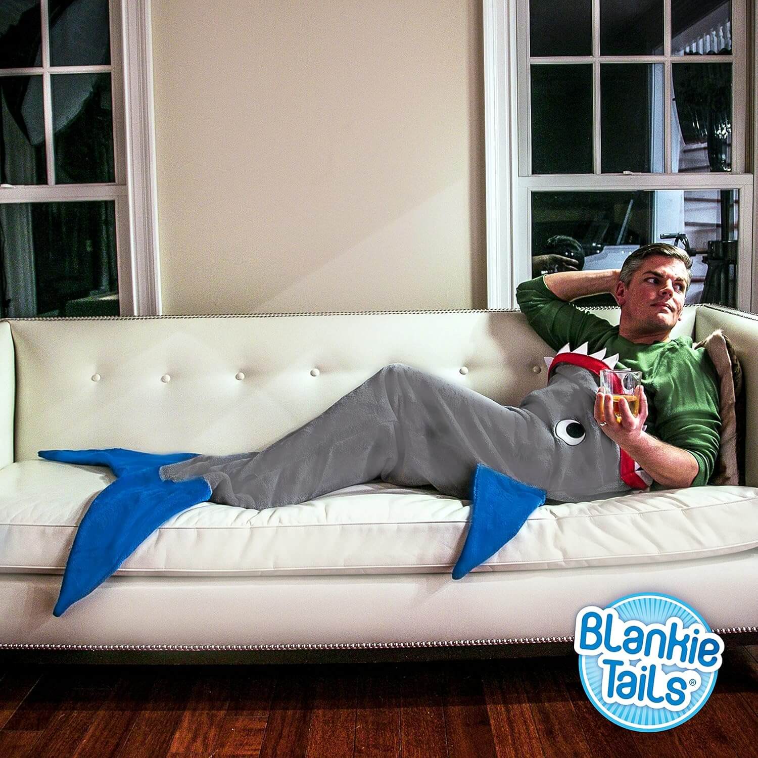 מחפשים דרך מקורית ומהנה להתחמם בחורף? שמיכת זנב הכריש הלבישה של Blankie Tails היא הפתרון המושלם! זוהי שמיכה נעימה במיוחד, דו צדדית, עשויה מפליז מינקי רך ונעים למגע, ועכשיו עם תוספת מדהימה – שיניים ועיניים זוהרות בחושך!