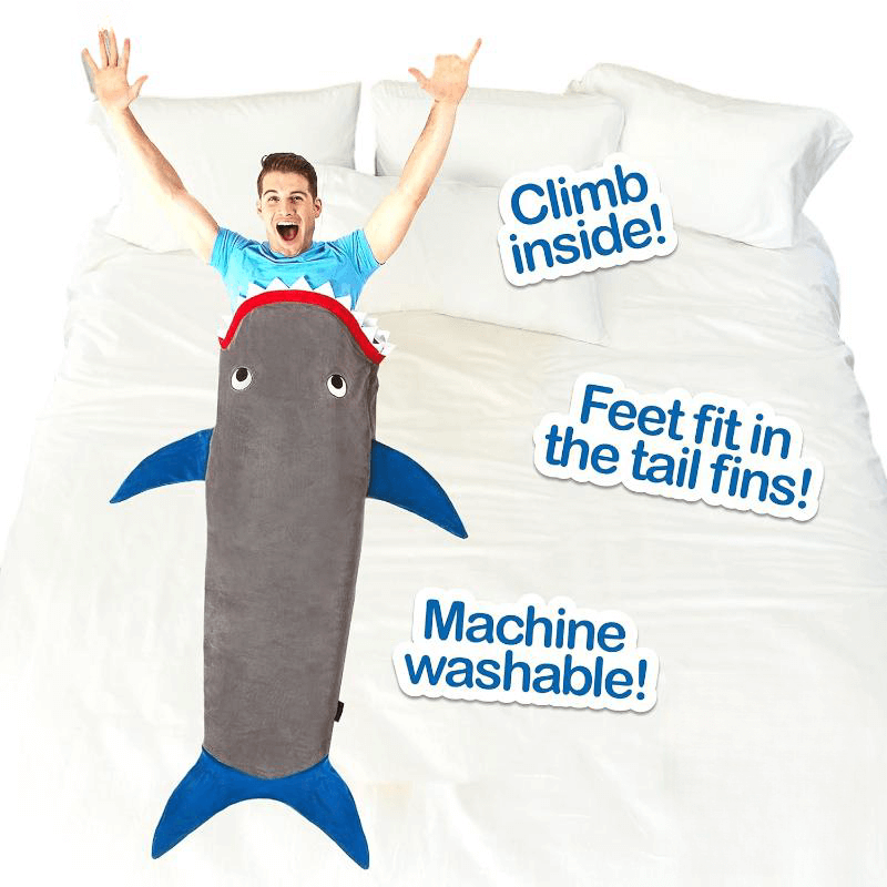 - הופכים לכריש: פשוט לבשו את השמיכה והפכו לכריש חמוד ומחבק! מושלם למשחקי דמיון, צפייה בסרטים או סתם להתכרבלות נעימה.