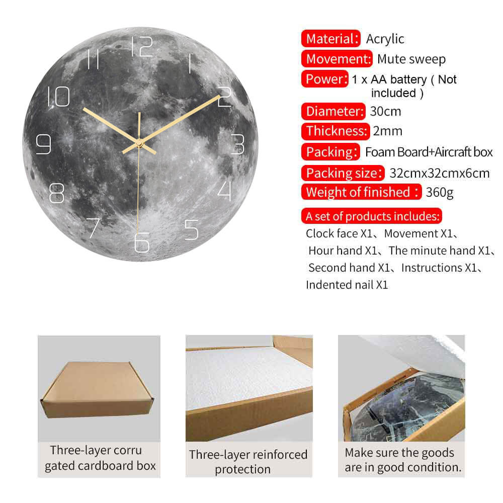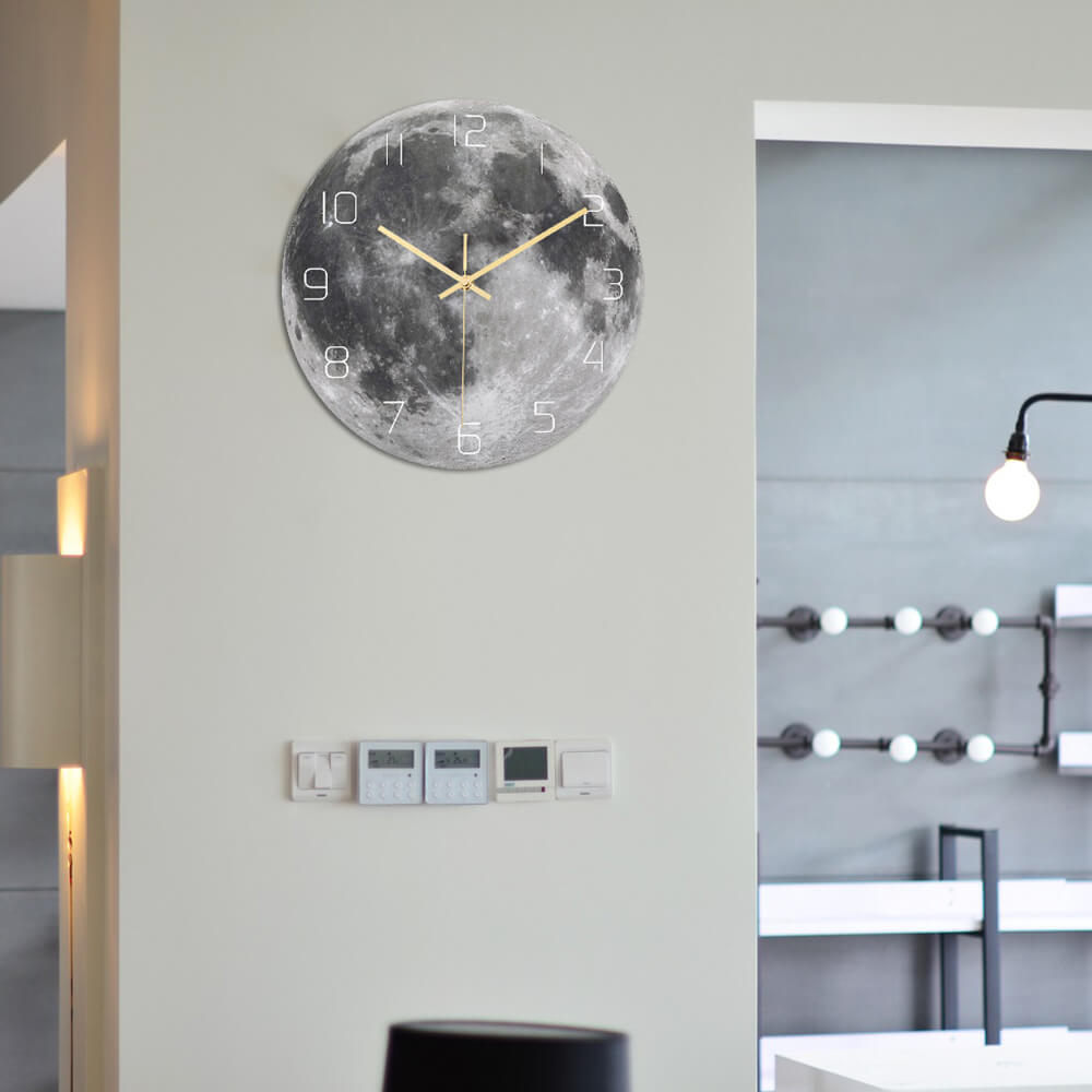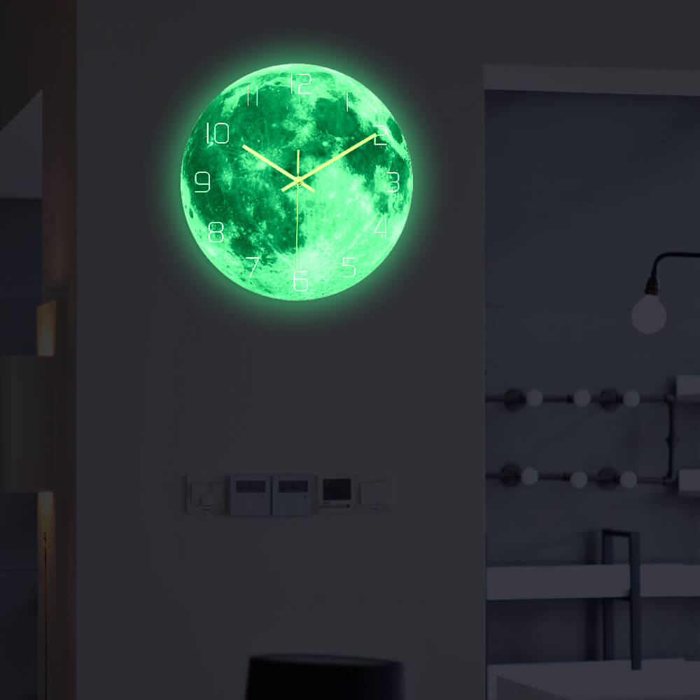 שעון קיר שידליק לכם את החדר, בעזרת "אור הירח", במהלך היום השעון נטען באמצעות האנרגית האור שיש בחדר, בלילה יש לכם ירח מלאה בחדר, בנוסף תוכלו להנות ממנגנון שעון שקט, מתנה מעולה לילדים שמפחדים לישון בחושך, נותן טא'צ עיצובי מדליק לבית. מתנה ייחודית ומיוחדת לכל אחד. מראה מרהיב בלילה.