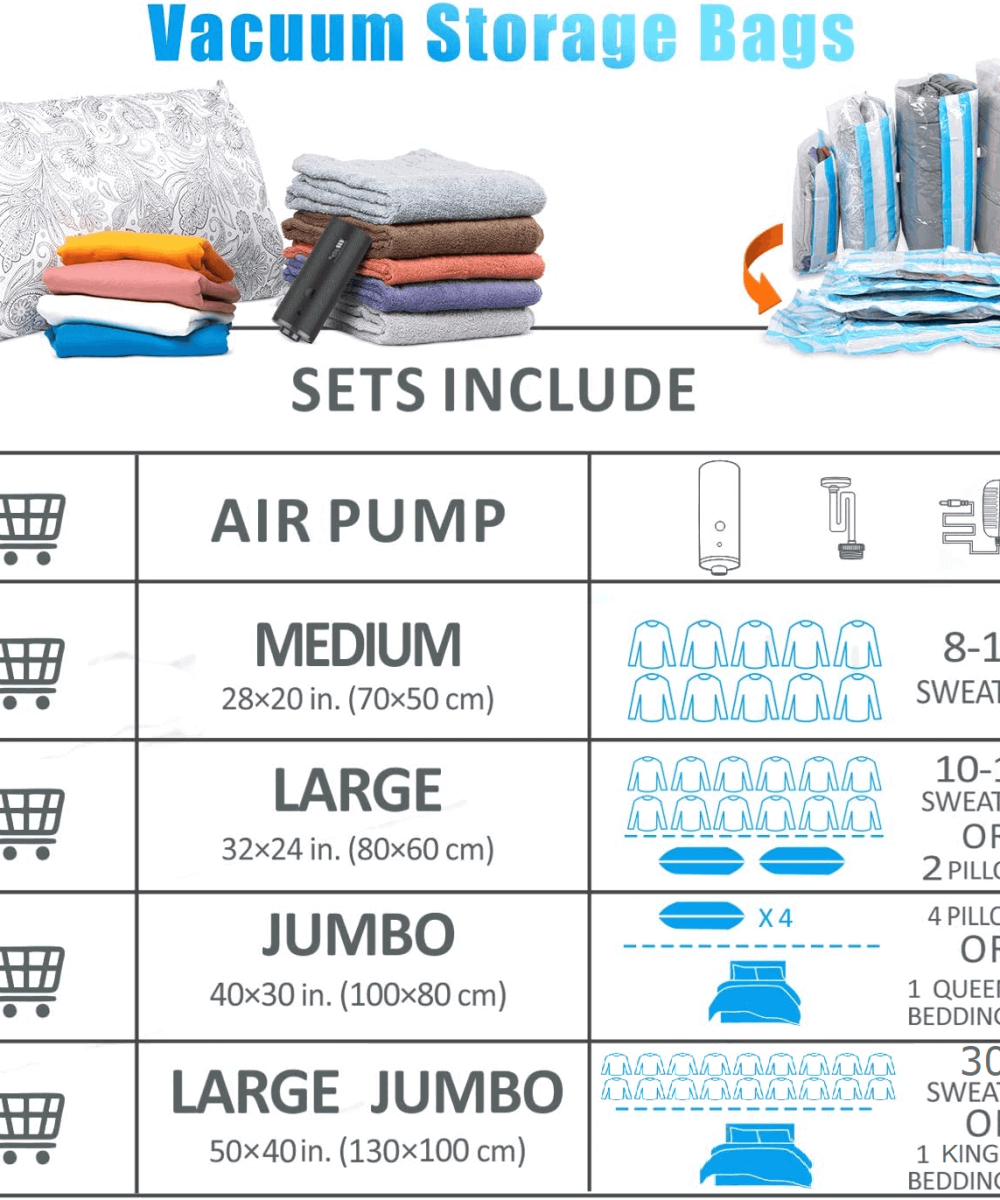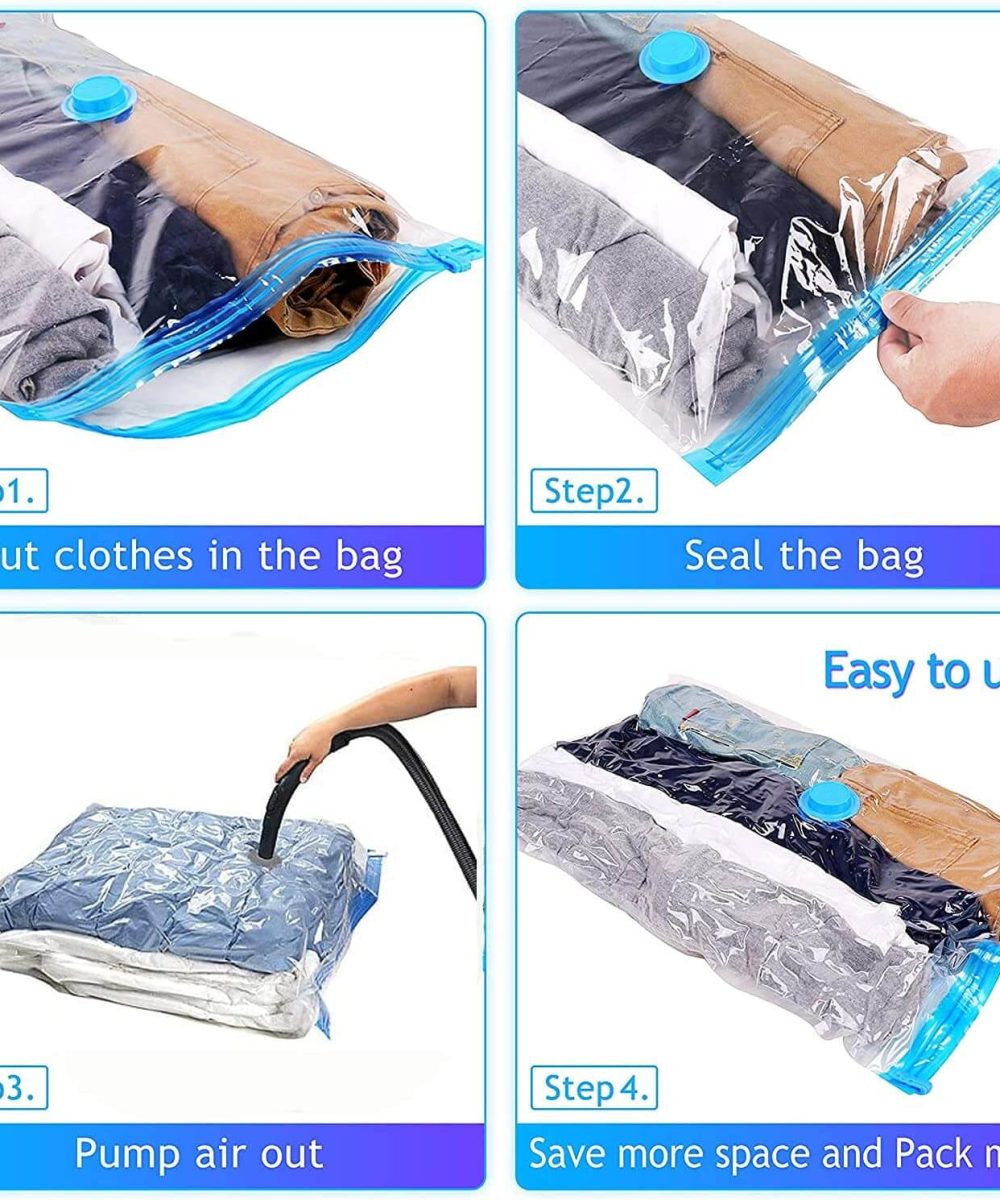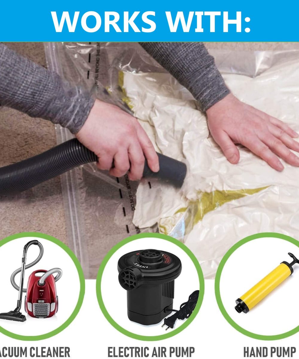 שקיות ואקום ענקיות XXXL לאיכסון מצעים ובגדים, החורף מסתיים ועכשיו צריך למצוא מקום עבור בגדי החורף והמצעים. שקית ניילון זו יכולה לפנות המון מקום בארון תוך כדי שמירה על הבגדים גם מפני מזיקים. הפעולה קלה ופשוטה, מכניסים את המצעים לשקית, מחברים את צינור שואב האבק לצד השאיבה, מחברים לפתח השקית ושואבים את האוויר עד לכיווץ השקית והמצעים שבתוכו לגודל הרצוי. שימו לב כי קיימים גדלים שונים אותם ניתן לבחור.