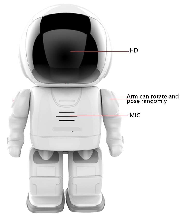 למצלמת רובוט שלל פונקציות רב שימושיות- פועל באמצעות אינטרנט אל-חוטי, כך שיהיה אפשר לצפות בכל המתרחש ממש באותו הרגע, גם מרחוק. כמובן שגם תוכלו לשלוט על זווית הרובוט, הפעלת צילום, הפסקה, ואפילו האפשרות לדבר דרך הרובוט כך שמי שלא יהיה בסביבתו ישמע אותכם והכל מתבצע דרך השליטה בטלפון שלכם! בנוסף לרובוט אפשרות לראיית לילה לטווח של עד 10 מטרים, גם אפילו כשהכל חשוך לגמרי! ניתן להציב את הרובוט צעצוע "התמים" היכן שרק תרצו ומי בכלל יחשוד שהדבר הקטן והחמוד בעצם מצלם! אפשרות להרחבת זיכרון הרובוט עד 64GB. רזולוצייה של 960HD עם 1.3 מגה פיקסל, זווית צילום 360 מעלות אופקיות! מידות הרובוט-4.797X 3.315 x 7.995