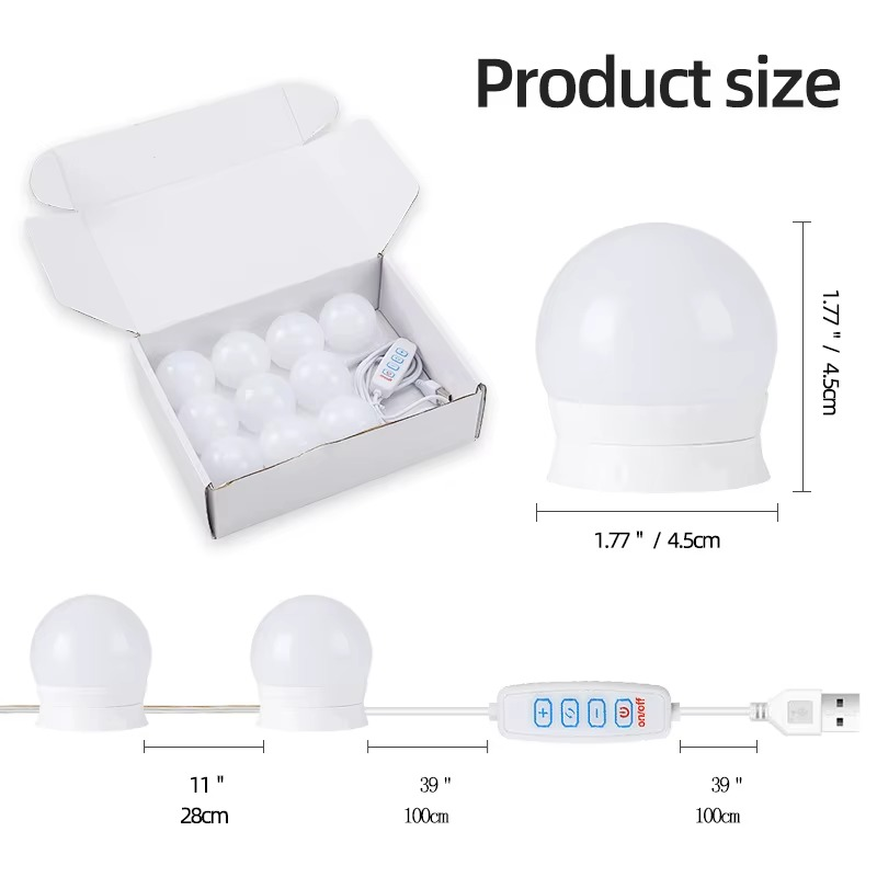 נורות LED הוליווד למראת איפור – 8 יחידות, חיבור USB