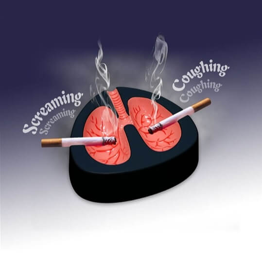 יש מעשנים רבים, חלקם מודעים לנזק הבריאותי וחלקם לא! חלקם מבינים שהם מפריעים לאלה שאינם מעשנים וחלקם לא! קשה מאד להסביר לאלה שמעשנים איזה נזק בריאותי הם גורמים לעצמם ולסובבים אותם, לשם כך יש לנו את המאפרה המשתעלת. המאפרה המשתעלת מדגימה לנו ריאות, לשם דימוי הריאות שלנו או של המעשן, ברגע שהמעשן מניח את הסיגריה על המאפרה היא מתחילה להשתעל. השילוב של הלכלוך של האפר במאפרה (בדמוי הריאות) ביחד עם השיעול של המאפרה ממחיש לנו למה גורמת הסיגריה. מתנה מצוינת לכל מעשן. תזכורת מדהימה וחינוכית למעשנים! פועל בעזרת 2 סוללות AA (לא כלול בערכה).