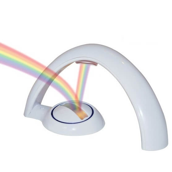 מקרן עם אפקט של קשת בענן קשת בענן אצלכם בחדר! להיט חדש לחדרי ילדים, חדרי שינה, או לכל מטרה אחרת. מקרן איכותי המקרין דמוי קשת בענן, עם כל הצבעים. פועל באמצעות סוללות ולכן ניתן לשימוש בכל מקום. אפקט מדהים ומדליק של קשת בענן היכול ליצור אווירה מרגיעה או רומנטית.